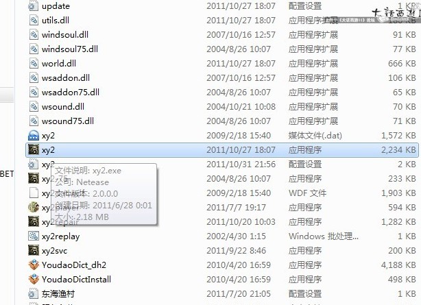 有些朋友应该是用的 Windows7的系统,如果运行大话受阻,这些或许对你有极大的帮助(当然如果运行畅通无阻就另当别论了)。 首先打开大话2的安装目录,找到xy2.exe,如上图所示。 更多游戏资讯请访问叶子猪游戏资讯中心:http://news.yzz.cn/ |