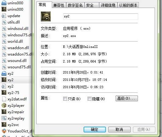 第二步:右击xy2.exe图标选择属性弹出属性对话框如图。 更多游戏资讯请访问叶子猪游戏资讯中心:http://news.yzz.cn/ |