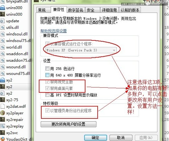 第三步:选择属性对话框中的兼容性标签,打开兼容性标签页并注意勾选图中红色标记的3处地方。 更多游戏资讯请访问叶子猪游戏资讯中心:http://news.yzz.cn/ |