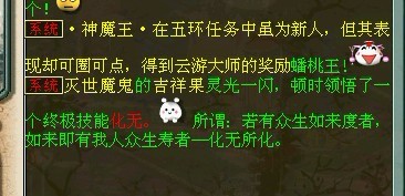 >>推荐阅读:潜龙勿用水陆翻盘 在刷天,修罗,鬼王,等等一干玩家的努力下,今天系统终于给玩家带来了点惊喜。化无诞生了,在一直吉祥果上。要恭喜灭世魔鬼了。在这个寒冷的冬季又给玩家一个暖暖的喜讯了! 更多游戏资讯请访问叶子猪游戏资讯中心:http://news.yzz.cn/ [编辑:紫幻冰子]