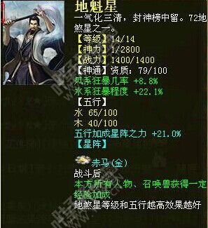 3、赤马阵 本方所有人物、召唤兽获得一定经验加成。 这个星阵在任务的时候应该还是不错的,不过这也取决于他加成的多与少,为了游戏长远发展考虑,人物升级不应该太快,所以小编推测加成的应该不是很多。那么这个星阵可能就比较鸡肋了。 |