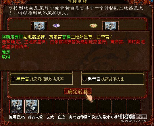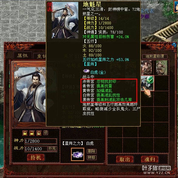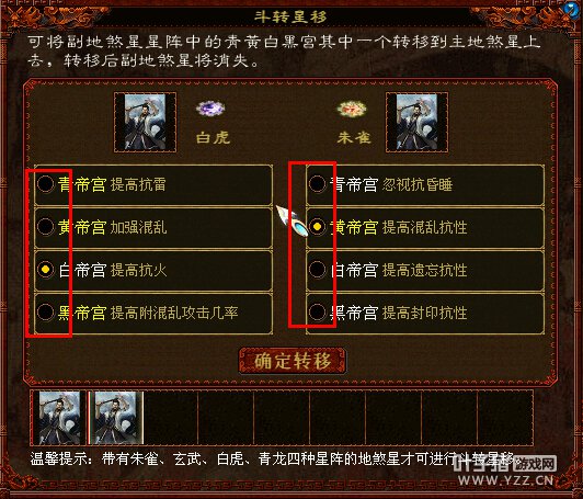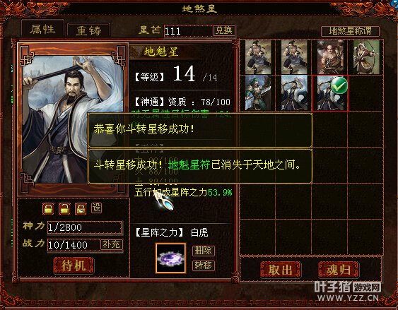 在大家浏览这个文章之前,我建议大家看一下有关星阵玩法的基础知识和星阵神通的基本类型。相关链接如下: 新资料片星阵基础知识介绍:http://xy2.yzz.cn/guanzhu/201407/832180.shtml 新资料片星阵知识介绍之神通分类:http://xy2.yzz.cn/guanzhu/201407/832421.shtml 【星芒】是通过击杀1-14级地煞星获得的。其中:11星给予15点,12星给予20点,13星给予点25,14星给予40点。 【星符】通过地煞天官或者地煞星录兑换星符,星符是可交易的。 星符的基础属性有以下几点: 【地魁星】地煞星姓名,大家都懂。 【等级】地煞星的等级。 【神力】这个其实就是地煞星的默契度,只要地煞星的神力满了就可以升到下一级,最高等级是14。可以用洗星册、演星册培养,每天最多培养5次。 【战力】耐久。不过多解释! 【神通】星符的核心。其中资质决定了星符的能力,最高资质是100,资质越高能力越强,绿色属性直接是幸福的属性。属性可以洗练,需要浑天石。(资质影响神通效果) 【五行】五行影响星阵的效果,五行也是可以洗的,直接提升星阵之力,无星阵五行不生效。 【星阵之力】如果该星符携带星阵则会出现星阵名。 【星阵】就是自带的什么星阵,不同的星阵有不同的能力。 【战斗中】这里其实讲的是宫位的问题,队长是赤帝宫,这个宫位是固定不变的。其他的宫位就看队长如何安排队员站位了,每一个宫位加成的属性各不相同。 有几个要点要说明一下【以下知识由测试服测试得知,具体情况请以正式服的效果为准】: 1、星阵肯定受五行影响,五行越多越高,星阵效果越好。 2、星阵是可以斗转星移的代价比较大,并且赤帝宫是不可以转移的属性固定,只可以转移其他的。 3、星阵转移也只有四大星阵可以,其他的不行,四大星阵分别是:朱雀,玄武,白虎,青龙。 4、几个不可控的因素是【神通】【五行】【星阵之力】。其中神通可以洗,五行可以洗,星阵之力可以转移。而对应的则需要一些道具,而这些道具的投放不出意外应该就是任务中投放了,价钱方面前期肯定略有波动。 5、对于普通玩家来说,如何更快速的获得星芒才是最重要的,所以击杀地煞星势必会成为开服之后一个至关重要的现象,资源有限,可能出现抢的节奏。 6、最后想提一点是:普通玩家尽量选择除四大星阵之外的星阵,因为四大星阵主PK,需要解决站位的问题。而其他星阵是全体加强,不需要严格的控制站位。四大星阵里面,队长位即赤帝宫这个点更多的属性是控制系的(以忽视混、遗忘、冰法鬼火等较多),其他的星阵可以根据实际的情况调整,但是目前没有看到加敏的出现。 下面就简单的发下我的测试过程: 登陆测试服在擂台后面找到这个NPC,你就可以兑换了: 体验服是直接可以领取星芒和测试内容的。 兑换星符: 兑换的物品里面可以随便换: 还可以随机,只是需要点体力: 兑换好了后,你的道具栏多了一个【地煞星录】如下: 这里面收藏着你兑换过的星符: 开始随机第14级地煞星符: 随机到一个物理系的星符,不过是朱雀阵的: 随机完星符,最大的可能就是去洗神通,洗神通则需要浑天石: 兑换浑天石和易象符: 洗属性在重铸这个界面里面: 第三个就是重洗: 开始重洗地煞星符: 道具浑天石,每次耗费2点体力: 洗练不仅会洗掉属性更会重洗资质: 这是洗完后的改变,也就是说洗练只会改变神通: 而五行这一块则需要重洗五行: 洗过之后的五行: 一不小心洗出了个三属性,感觉还可以: 就是这样子,加成星阵之力变大了很多,可以前后对比一下: 这是一个炮仙专属的五行和神通: 神通洗练: 洗出了无属性,对于神兵仙来说真是如虎添翼 这是没带星符之前的无属性抗性: 这是带了星符的无属性伤害,数据上有明显的作用。相信克也是如此: 我们再来讲述一下星阵,星阵在星符属性的正下方: 对于不同的宫位是可以改变的,但是队长的不变。注意套框框的注意要点: 把你不喜欢的宫位是可以转移的,比如下面这个抗火替换成抗混: 确定转世后,副星符是会消失的,也就是被吃掉了 转移成功: 抗火没有了,转而是抗混: 最后,提一下星符里面是有地煞称谓的,称谓的获得就是努力的击杀。应该会有对应的成绩功绩给予。 <<<点击进入大话西游2论坛讨论>>>