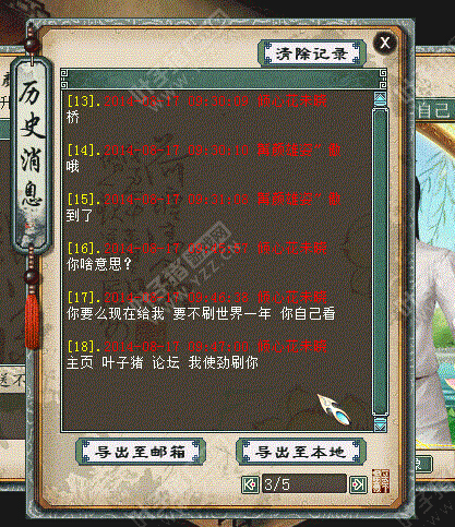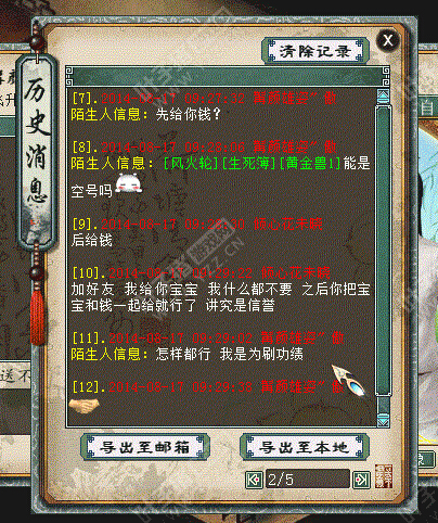 鹤舞云天的骗子【髯颜雄姿〃傲】租我宝宝刷功绩,给我发了5级双强鬼火遗忘的书,10开的风火轮,义金飞花黄金,说自己不是空号租下宝宝刷个功绩,结果宝宝给他了,直接下线,这种高级装备的骗子最该死。下面是聊天记录,鹤舞云天的都来看看这个垃圾,缘聚天脉的帮主,你自己看吧,我相信你自己有判断力。(暂时仅一面之词,但有玩家对该玩家事迹作出评价,并不忠厚)。 玩家【谁恨无晴】说:这个号真是莫名其妙,一段时间说卖了一时间又说在,没想到是骗子。 [编辑:紫幻冰子]