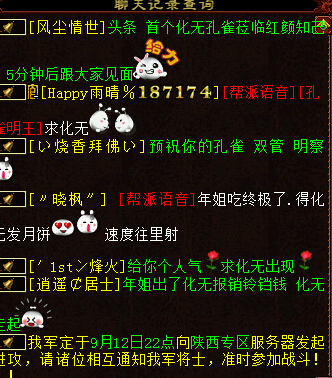 年姐真是厉害,晚上11点多的时候,刷铃铛说恭喜红颜知己第一个化无孔雀降临,结果不到12点的时候,孔雀真的修炼出一个化无。 >>推荐阅读:大话西游2男人之间的单挑:做人是首先需要学会的技能 [编辑:海大师]