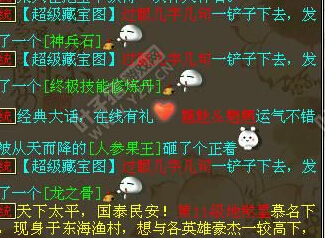 某区一土豪怒砸4E现金去挖宝,觉得东西给的不好,随之边挖边骂,但小编从奖励来看,似乎还不错。到底是土豪不满足还是几率太坑人? >>推荐阅读:大话西游2提炼100个成功36:某玩家怒提舍生取义 根据我朋友所说,其实这个土豪已经挖了很久,所以我上线的时候只看到了这些,他还在世界骂了好几遍GM,一边骂一边挖,好像挺悲催的 跑完5环我就下了,后面有没有挖出什么神兵就不知道了 |