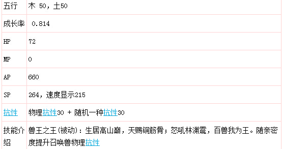 丸子宝宝。敏攻宠。被动技能感觉垃圾死了。 兽王之王(被动):生居高山巅,天赐铜筋骨;怒吼林渊震,百兽我为王。随亲密度提升召唤兽物理抗性 <<<点击进入大话西游2论坛讨论>>> [编辑:岁聿暮年]