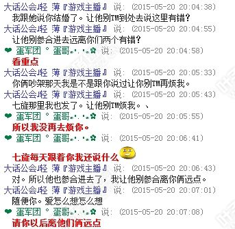 小编接到玩家——瞬间亦永恒的爆料,爆出一位CC女主播多管闲事竟然劝吵架情侣分手,对待粉丝态度极度恶劣,非但如此对待自己的朋友不真诚,在背后黑对方。 下面先看瞬间亦永恒是怎么爆料的,小编随后也联系了事件相关三位主人公会带大家看看着到底怎么回事? 瞬间亦永恒爆料 这样的主播我不知道说她缺心眼呢?还是缺心眼?心计特别重! 人家都说我以前关注她的时候,刷礼物都是不眨眼的直接扔,我去玩巨蛙弄了点金币就给她各种刷,我人不咋样,我喜欢和你玩,刷点礼物不是事,但是受害的是你闺蜜!闺蜜啊! 人家都说当你是闺蜜,你为啥要劝他的粉丝远离她?为什么要和人家的另一半说些不是事实的话?为什么人家没走到现实的时候你不去说,人家走到现实了你才来说呢,因为是羡慕嫉妒恨? 我真的是十万个为什么?很多为什么想问。 我自己想的一句话送给你:人犯贱没关系,心计重比犯贱还可恨,人贱则无敌。 这话是发自内心的!正常来说,一个男人也没必要跟一个女的计较这么多,我也不是说是个什么都斤斤计较的人,俗话说,忍无可忍无需再忍。你把我夹在这段关系的中间,我无所谓,摆我上台就扔下我不管也无所谓,但是为什么事后你可以把你的所作所为推得一干二净呢? 想找你个说法吧,今天上CC一看,哎呀,删了好友了,我就和人家受害者玩得好,我改马甲就咋滴?我一直和他们说,我想退掉房间的红马,不想和她玩了,但是不是很懂CC,怕直接退公会也把蓝马退了所以没退,昨晚你叫皇马下掉我的马甲,我很开心,群里也发了。 但是我今天晚上跟我们自己组的蛋军团专业跑骚的去女神房间捧场,我没空走开,开个小号过去找你要个说法,进去我就问你一句就禁言,骂我是狗,叫我开大号。这下来火了,大号直接飞30,进去跟你说,你说的啥?你就一条狗乱咬人?你造谣人家干嘛呢?人家哪对不起你吗?你一直劝人家对象离开他,人家对象说的一清二楚的说你老是劝他,也经常劝她的粉丝远离她,但是你为什么对着当事人就不敢承认?对着我又不敢认?不敢给说法?给我的感觉是心虚是吗? 我不敢乱骂你,你如果看到的你敢不敢在这里发个毒誓?在30上千人面前发个毒誓?做人不是这样做的,好吗?这么说你也27岁的人了,你天天在房间说自己17岁各种卖萌坑各种礼物也就算了,对我说的话没句是真实的,说的什么都是没兑现的,有意思吗?刚开始关注你的时候,没闹这事的时候,我哪个星期不是在你榜上的第一或者第二名的?每个礼拜就给你丢个5百块的礼物(当然,土豪几百块不看眼里,但是小屌丝也是看重的自己赚的辛苦钱) 你号上有五阶,五级神兵各种神兽等等的,有必要这样坑粉丝的礼物么?还是号上的东西都是坑回来的?还是你本身是一个白富美?富二代官二代呢?这个还是见仁见智吧,我个人思想,粉丝们愿意给你刷礼物,是想和你玩,你开话叫人家刷礼物,开守护,人家不想开的话,这不是尴尬吗?上辈子欠你的么?不给你刷礼物你就不理人了,好像欠你一斤米似的,人家导播卡你就开骂?有没想过,或者别人家人都没这么骂过他呢?至于一般骂得多难听,看过他直播的都知道。平时嗲嗲的,内心可汉子了。 (下页开始爆料) 玩家瞬间亦永恒从主播轻薄这听说他骂七旋,理由给出的是他无聊。 瞬间亦永恒受不了冤枉,在七旋女朋友的蛋蛋群里直接发他和轻薄的对话找蛋蛋对峙