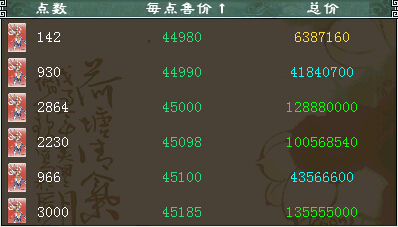 大家好,今天继续为大家带来最新一期的物价系列节目,走进各大热门服务器,探访各种热门道具以及高端的召唤兽、仙器等价格,让大家看看大话最新最前线的物价走势,对比各大服务器来反应整个大话的经济体系。 本期我们来到的是大火服务器中的另一个代表——再爱一次,这里不仅有封神无名、猪扒皮等一众顶尖玩家的存在,还常有撕逼铃铛等资讯总是吸引大家的眼球,更是有着许多本身实力强劲,但被大明星光辉掩盖的低调高手,今天就请大家跟随小贝的脚步一起来看看,这个聚集着众多神豪、土豪玩家的服务器的经济底蕴,我们从各种热门的道具看起,最后会一一奉上本服务器最贵最精品的内容,这就开始吧! 还是最先看看本区的点卡价格: |