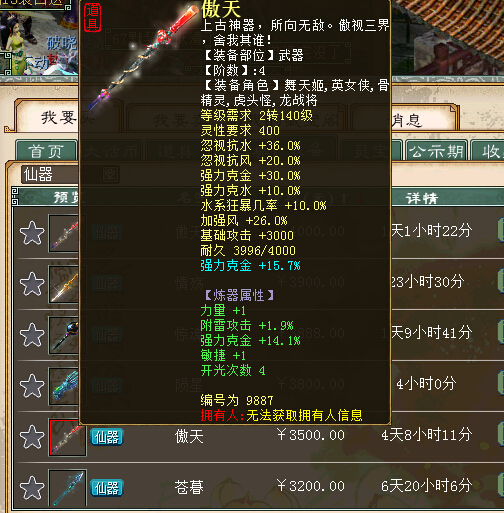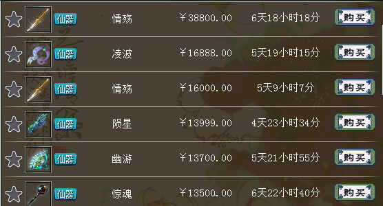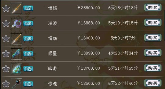 四阶 仙器市场同样火爆,近百件四阶非常亮眼