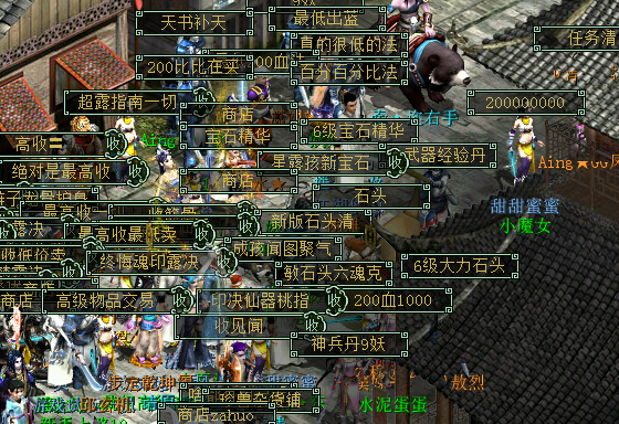 大家好,新宝石系统在试玩服务器已经出来数日了,很多玩家也已经对此玩法比较熟悉,但咱们这些常规服务器的玩家却还无缘一试,今天小贝就带大家来看看,这些新的宝石在试玩服务器中的价值如何! 进到试玩服务器,宝石小贩附近从早到晚都是红旗招展,人山人海~ 而宝石主要出售的市场,基本都集中在洛阳集市去往何大雷的这条路上: 相信还有很多新手玩家不知道,禁交易的宝石该怎么交易?就是要用到下面这家伙,打在装备上就可以交易,用的时候花费体力拆除下来就可以咯,这也是目前禁交易宝石唯一的交易方法: 看看和本区终极修炼丹的对比,知道这新道具有多火了吧: 下面就看来看看,各等级、各种类的新宝石,在试玩服务器已经卖到什么价了呢: |