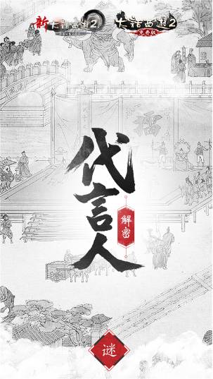 2016,期待不止于此!《大话西游2》重磅升级,全新代言人即将倾情加盟!一时间,大话江湖热议四起,长安城内众说纷纭!究竟来者何人?且看代言人悬念站,以“谜、疑、猜、解”四部曲为你透露些许线索,助你揭开神秘面纱! 大话西游2全新代言人解密 来者何人 男神即将加盟 2016,全新代言人即将重磅加盟!十四载大话情义,谁将代言? 风姿特秀,逍遥如影。 江湖十载,与歌同行。 临渊飞剑,沧海问情。 浴火重生,共话前缘。 只言片语中,说不尽的江湖情义,道不完的青葱岁月,此次神秘代言人的线索,也尽在其中。 代言人线索提示 从剪影中,更可窥得此位代言人的一鳞半爪,怀抱长剑,傲立江湖,男神风范展露无遗! 提示隐藏在四人对话中 全品牌代言 期待不止于此 多年的坚持与积累赋予了大话2独特的品牌个性,情义、坚持、用心,是其历久弥坚的深刻底蕴。2016,期待,不止于此!此次代言也将以全品牌联动的形式进行,这位呼之欲出的神秘男神,将成为首位大话西游全品牌代言人,那么究竟来者何人,谁将携君之手共话前缘,答案即将揭晓,敬请期待! [编辑:编号223]