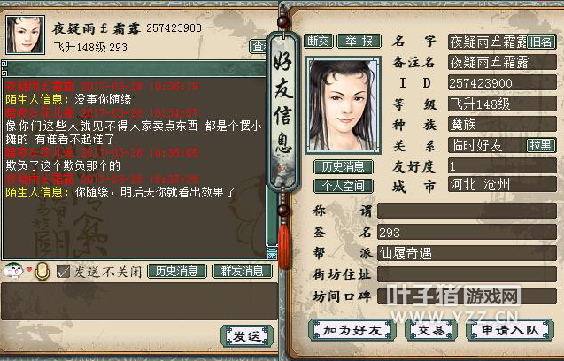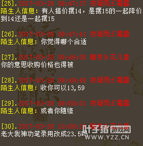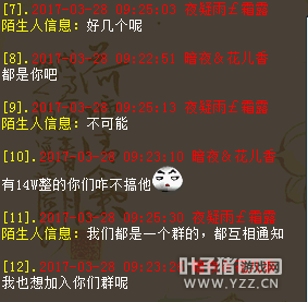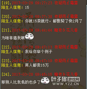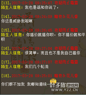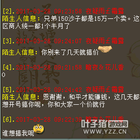 我是百鸟朝凤玩家暗夜花儿香,在这区我就一个号,最近没事就摆摆摊,结果就被人私聊威胁了。 事情是这样的,我摆摊每天能卖3-5组沙子,我摆149966对方摆150000,问题晚上很多玩家摆摊也有14整的,对方如果是跟我商量也行,看看他给我说话是什么口气?扬言要开几个号搞我。 还所谓弄个群小虾米不加,只要他们改价通知我,意思我想摆多少得先请示他,不然就等着被搞。在此想曝光下,实在太气人了。 |