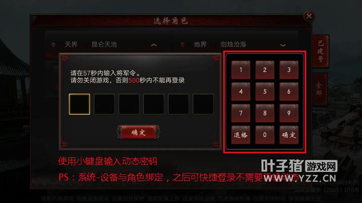 一、口袋版登录与绑定 1.登录 输入账号和密码 输入账号密码 输入动态密码 即可登录啦 2.绑定 登录成功后,通过主界面的系统-设备与角色绑定,使用物品锁和手机验证绑定设备,下次即可快捷登不需要再输入动态密码啦。 当然不绑定也是可以的。 绑定界面 输入物品锁及手机验证绑定成功后界面如上 3、退出 通过系统设置-切换角色将返回角色选择界面,游戏中的角色也同时下线。安卓端可以通过连按两次返回键来退出游戏。 4、其他说明 注册:目前口袋版没有注册功能,需要再PC端注册好之后再登录 密保:密保卡用户无法登陆。(密保卡已停止使用!为保障账号正常使用及安全,建议绑定手机将军令!