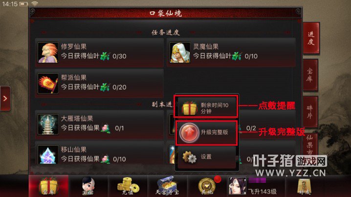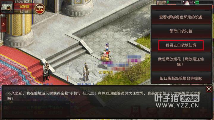 四、旧口袋版功能转移 ps:关于新旧口袋版的相关体验请阅读>>>温馨提示:你有一个口袋版礼包尚未领取 1、在首次登陆新口袋版时,可以选择“精简版”及“完整版”,精简版中仅有旧口袋版的仙果点化、聊天及养育功能,没有其他功能,无法与电脑端无缝组队。 两个版本提供选择点击其他-升级完整版可以进行升级,升级需下载约2G的安装包 2、如果已经下载了完整版,可以在幻境精灵(宝象国57,149)处选择“我要去口袋版仙境”进入。 进入口袋版口袋仙境 3、在幻境精灵还可以查询设备绑定情况及申请解绑 查看或解绑 点击对应设备可申请解绑 4、其他问题: ①我在旧口袋版中充值的仙缘去哪了? 我们将在6月1日停止旧口袋版的登录,之后将陆续处理大家的仙缘、物品等数据。预计会在6月2日前返还大家。返还后,大家通过礼包中心可以领取到在旧口袋版中的经验、师贡、道具、仙缘等数据。这些数据将保留一年(2018年6月7日后不可再领取),请大家及时领取。 ②5月25日-6月2日之间,我在旧口袋版兑换的仙缘为什么在口袋版中看不到? 因为我们会统一在6月2日之间将旧口袋版的数据转移到新口袋版中。所以在5月25日-6月2日之间,新旧口袋版的数据还不互通。因此会出现在新口袋版充值仙缘,旧口袋版看不到,在旧口袋版充值,新口袋版也看不到的情况。6月2日之后,这个情况会得到解决。