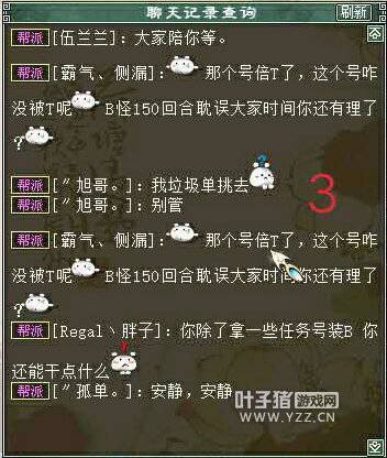 帮派押镖应该是一件比较和谐的事,可是如果遇到一直大B150回合的帮派成员你怎么办? 来自剑烛沧海服务器的玩家q20120101水瓶就遇到这样一件糟心的事,下面来看看他是怎么说的。 押镖事件起因: 1.帮派运镖杀妖怪,玩家进入战斗一直大B150回合耽误帮派成员正常运镖,据说号是他朋友开的,帮派很多人都是双开甚至我知道的是一个成员6开,此任务不能取消不能飞行,导致一群人在那傻傻的等着 2 帮主T了此人 并说当时此人不是本人所上,当事人要求等本人上线后在帮派跑频道澄清下当晚并非本人上线(因为帮主说了,此人的号还会加回帮派)结果此人未说话,帮主率先说澄清不可能 3 当事人为任务号所以帮战只是3人炮灰队,对帮派起不了太大作用,可是从更改帮战制度以后从未缺席 那会帮战是不给护身符的 现在晋级了 给护身符了 帮主选择了维护此人放弃当事人 我只想说这种帮派不得人心,呵呵了 帮派对话