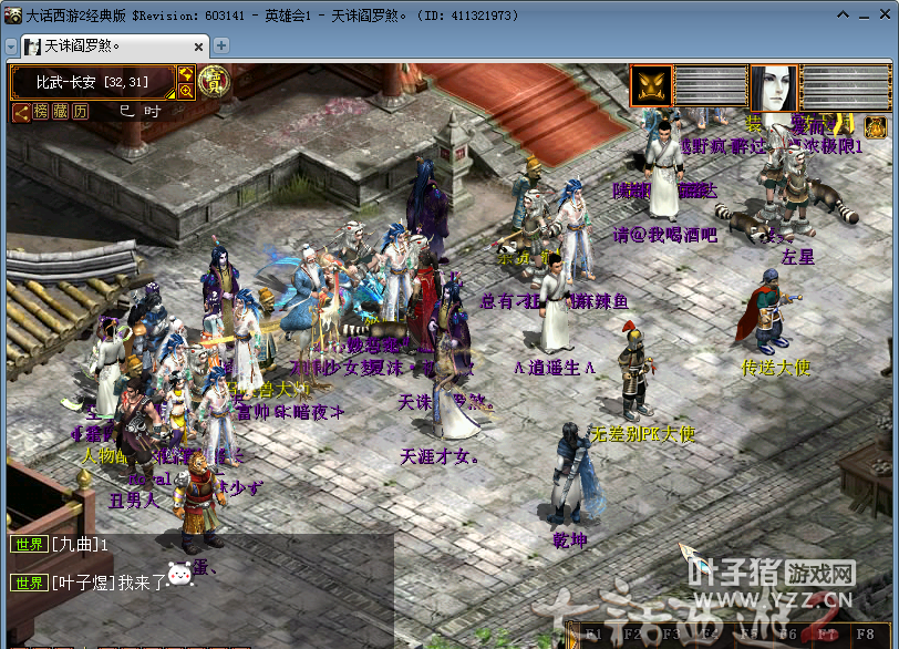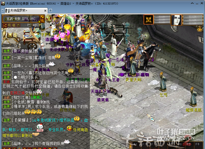 英雄会服长安状况: 10点之后进入服务器的,3个点都去围观了,人也多,满世界招募。 |