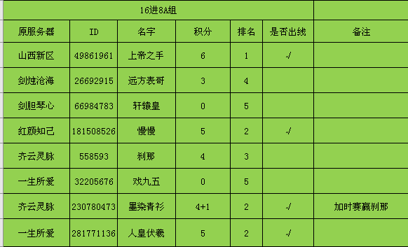 在这里我们要恭喜A组的上帝之手,慢慢(虐心),墨染青衫和人皇伏羲四位玩家.希望以上玩家再接再厉,给大家带来更精彩的表演,也给自己取得更优秀的成绩! 最后,给大家奉上本次上帝杯16进8A组的部分精彩录像!后续会有上帝杯16进8B组淘汰赛和8进4淘汰赛和最终决赛的激烈战况,欢迎大家持续关注! 下面附录像: <<<点击进入大话西游2论坛讨论>>> [编辑:wei]