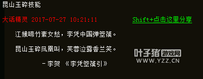 和玩家曝光的是一个数据,也不知免费版和经典版的鎏金宝鉴数值是否有差距呢?这个还是等经典版最终数据曝光为准吧。 最后我两个版本的大话精灵都问了一下妙音鸾女“昆山玉碎”技能的作用,不过没得到想要的答案。 大话精灵的回答