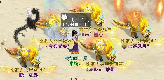 【采访贴】 记者素绾:首先恭喜队伍获得比武大赛冠军哦,这个冠军算是凌烟阁第一次得到冠军了,想必大家也是非常开心,有没有什么想发表的呢? 止谈风月″:也没有什么特别想发表的,都是整个服务器的努力,也算是今年圆了一下自己的梦。 记者素绾:记得你们之前还称自己为最悲情团队,现在好了,得到了冠军,你们参加过几次比武大会呢? 止谈风月″:比武大会一直在打的,除了队伍重组的时候没有办法参加。基本都参加了。 记者素绾:坚持不懈阿,参加了这么多次比武大会,这次拿到这么好的成绩,应该和队伍长期积累下来的经验以及好的配合有很大的关系。这次比赛中有没有遇到有挑战的队伍呢? 止谈风月″:冠军是几个队伍的努力,当然,能进甲级比武的队伍,确实没有弱的,每个队伍我们都是拿出十二分的精神去打的。 记者素绾:这次比武中的几个队伍,也是曾经的老对手吗? 止谈风月″:嗯,基本都是以前经常见过的老对手。 记者素绾:老对手相遇,也是为对方都提供很好的切磋经验呢,这次决赛和山西区队伍打,4回合结束决赛,非常漂亮,感觉控制的很好,完全没有给对方机会。战术安排是提前有规划过的吗?还是完全临场发挥。 止谈风月″:整体参赛队伍是我们小拽的大哥,无名大兄弟策划的,我们队伍的打法,是小拽提前安排的,确实也打的比较理想,每个人都有付出,这个结果也是凌烟阁所有玩家的一个小小的心愿吧。 记者素绾:是阿,凌烟阁服务器现在自带光环呢。能提前这样安排,队伍指挥功不可没,那么你们队伍是如何应对不同打法的队伍呢,比如敏队血队。这个应该是很多玩家想了解的。 止谈风月″:我们都是提前调配好各种装备,然后看打什么队伍换什么装备来应对不同的队伍,当然主要也是指敏队和血队。 记者素绾:有没有什么特别针对的打法呢? 止谈风月″:主要就是敏队和血队,因为大家也都知道,这个打敏队和血队区别很大,也要看换装备之类的手速,秘诀就是不能紧张激动。 战斗中截图