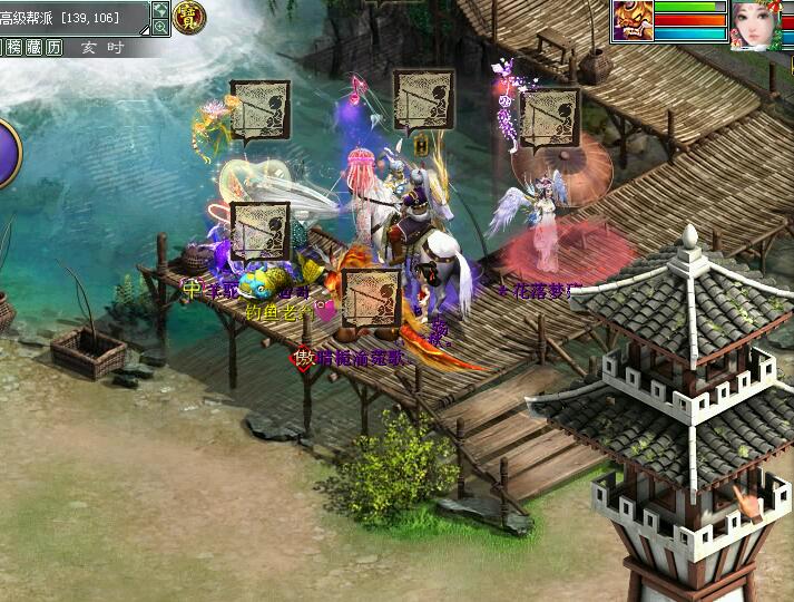 活动2:帮派钓鱼活动。5人一组,第一个钓到鱼的帮众可活动奖励毁梦、龙骨,无量,丸子等。 看看这场面,大家都成姜太公咯!
