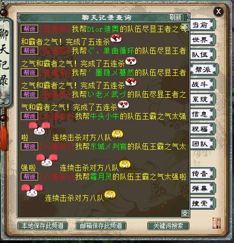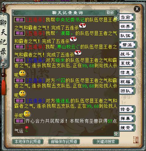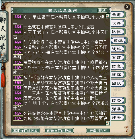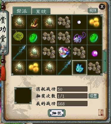 活动三:帮战5连杀以上队伍可获得奖励(包含筋骨,仙器,六魂,补天,) 最后,还有赏功堂大抽奖! 帮派赏功堂,抽奖开始!