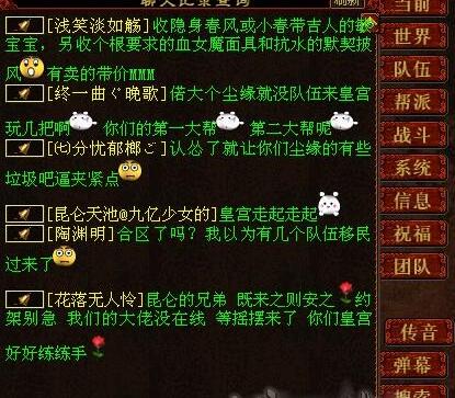 昆仑天池和尘缘未了刚刚合区,区内就上演了一出铃铛大战,到底是友谊赛的邀请,还是赤果果的挑衅呢? 看看这个刚刚发生的铃铛事件: 昆仑玩家入区之后开始热闹咯!