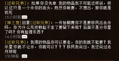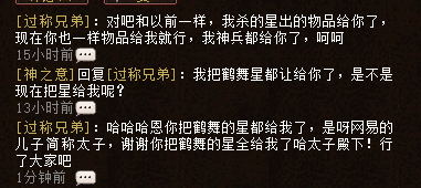 大前天收到来自鹤舞云天一位玩家的爆料,说鹤舞出现了星霸,不能抢15星,只要抢了,东西就要给他! 咋一听,这是利益起的争端吗? 该玩家从贴吧、以及鹤舞云天的其他玩家中大概了解到了事情的起因与经过,那到底是怎么一回事呢! 我们先来看看当事人的聊天截图(截图来自当事人游戏空间)! 看到这里,我表示很疑惑,杀星的奖励分红给队友说得过去,但为什么会要求给其他杀星的队伍呢! 据说其中还有故事,我们继续来看下空间截图! 虽然只有两张截图,但是信息量有点大!个中事情,他们在铃铛喊话中,也有提及,让我们继续看!