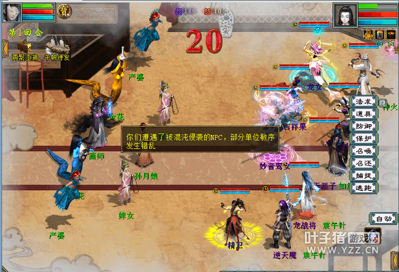 混沌危机 活动内容 1、活动背景:三界混沌危机日渐严峻,四族、野怪、NPC等纷纷被混沌侵蚀。 活动流程 1、日常任务和副本挑战时有几率遭遇被混沌侵蚀的NPC。表现为:混沌会使战斗双方若干单位敏序错乱。打败他们,可助其清除混沌状态。遭遇时若挑战胜利可额外获得经验、战绩(可找麒麟村长兑换物品) 2、非战斗状态时,对话一些NPC(比如超级巫医、李道宗、神秘驯兽翁、庙祝、驿站老板等时)也可能表现异样,突然对你发起了攻击或者扣血法。 3、击败被混沌侵蚀的NPC时有几率掉落混沌结晶,可以找灵兽村(196,57)找守宫长老提炼。点击使用,装备上提炼的混沌结晶,可一定程度抵抗混沌干扰。 活动奖励 额外经验,战绩(可找麒麟村长兑换物品),混沌结晶