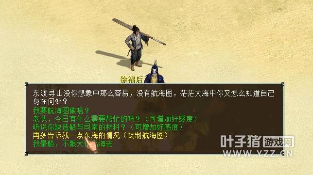 绘制航海图 活动内容 1、活动时间:6月13日10:00-7月4日维护前 2、任务条件:角色等级≥50级,时间宠≥15级 3、活动背景:据说徐福后人去过东海,找他绘制航海图。 4、活动要求:需完成前置引导任务:出海前奏。 活动流程 1、每天前3次帮助徐福后人(单人跑环任务),可获得一定好感度,好感度可用于绘制航海图。 2、提交造船材料给徐福后人也可以获得一定好感度。部分材料随着提交数量增多可得好感度变少。 3、点击徐福后人绘制航海图,每次需要消耗好感度80。 4、7月航海玩法中担任大船船长,小船冒险都需要绘制完成的航海图。 活动奖励 航海图需要14次才能完全绘制完成。每成功绘制一次航海图即可读取一次经验、物品奖励(共14次) [编辑:枫花]