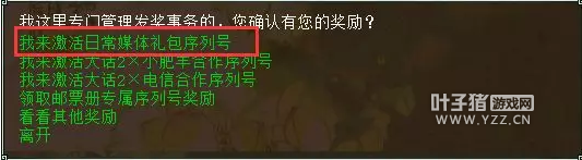 开服时间:2019年7月12日12:00 预约时间:2019年7月11日12:00-7月12日10:00 多线新服群英会 与您相约人界 7月12日,新服【群英会】,虚席待君至。 背景介绍 七月,骄阳似火。 七月,激情似火。 一年一度的大话西游2无差别PK赛再次打响, 来自全国各地的大话英豪们正摩拳擦掌, 报名、组队、确认, 平时忙碌的队友为了同一个目标而聚集; 装备、灵宝、坐骑、宝宝、孩子, 每一次调号都一丝不苟; 每位热爱PK的大话玩家,都期盼着这一年一度的PK盛宴, 期盼着这次能比去年走得更远, 期盼着和小伙伴们一起再把队伍好好磨练, 期盼着验证一下新灵犀技能、新套装在比赛中的威力...... 2019无差别PK赛,幸运之神这次将眷顾谁?敏队能否延续去年的辉煌? 全新套装、全新灵犀技能是否会在这次无差别中展现锋芒? 2019年7月12日中午12点,人界新服【群英会】,与您相约在这如火七月。 礼包预约 预约提醒 本服务器将于7月11日(周四)12点开启预约,7月12日(周五)上午10点结束预约。预约成功者,可于7月12日(周五)开服后,到游戏内界面领取预约礼包,获得丰厚奖励。 预约方式 登录本服务器,在弹出框选择“直接预约”方式,选择相应礼包完成预约,预约成功后玩家将退出游戏,待周五中午12点开服后,到游戏内界面领取预约礼包。 预约礼包奖励内容 新玩家注册账号地址:http://xy2.163.com/reg/ 新玩家游戏客户端下载地址:http://xy2.163.com/download/ 新服常规活动开启,愿你升级无忧 鎏金宝鉴没抢到,新服没有新宝宝?龙涎丸宝宝新服太贵量太少?神兽这好像从来和我无缘? 别急,只要你升级,这些你都有机会拿! 新服专属活动:名动三界 服务器开启第5周后将展开名动三界活动。 活动将持续12周,凡在活动期间,达到2转120级的玩家既有几率在领取升级福利时获得鎏金宝鉴召唤兽;2转120级及以上的玩家在达到每周活跃度要求后有几率在领取周福利时获得五常神兽,鎏金宝鉴召唤兽,龙涎丸召唤兽! 同时,只要每有1000个玩家达到3转102级,我们将会增加一只鎏金宝鉴召唤兽;每有500个玩家达到3转143级,也将增加一只鎏金宝鉴召唤兽投放! 相信你的好运,神兽就是你的! 新服专属活动:步步为赢 新服前24个周,玩家可以给自己制定6次冲级目标。 玩家可以给自己制定6次冲级目标,在活动结束前达到目标等级,可领取对应步步为赢礼包。 愿你升级无忧,好友良多,好礼奖励,都在等你!祝各位好运! 7月12日,【群英会】火热开启,虚席待君至! 大话西游2&叶子猪独家限量礼包!让你与他人与众不同! 如何领取独家限量礼包? 扫码关注“叶子猪大话2”微信公众号! 回复领取暗号:6756,即可获得独家限量礼包哦!让你与他人与众不同! 下面,我演示下如何激活礼包! 首先,先来到长安(397,228),找到发奖大使! ![]() 然后,点击“我来激活日常媒体礼包序列号” ![]()