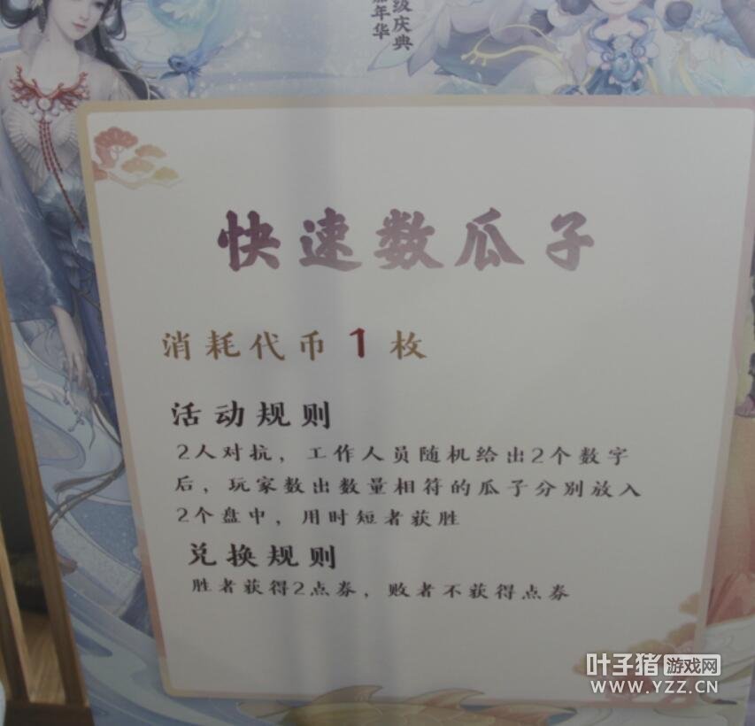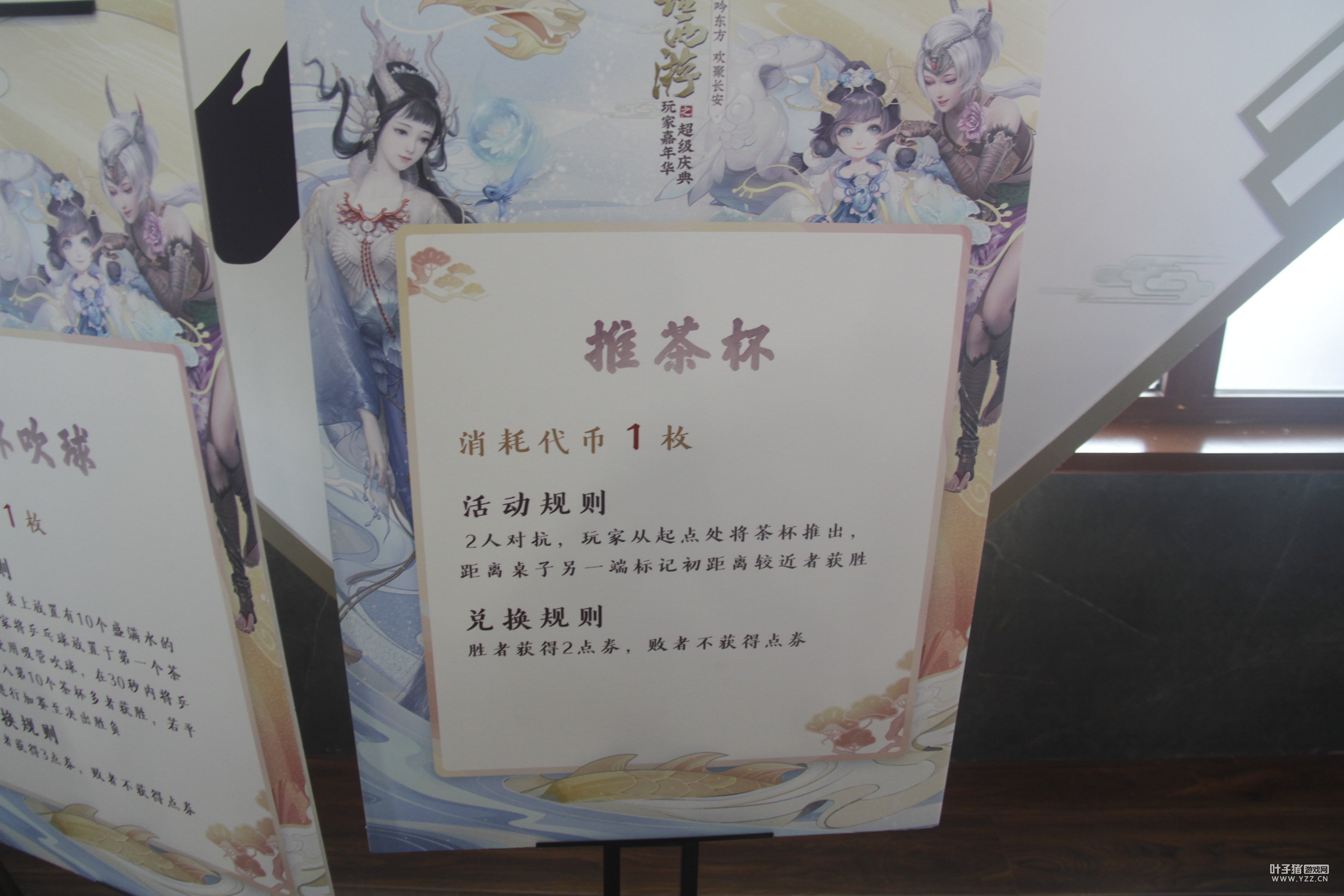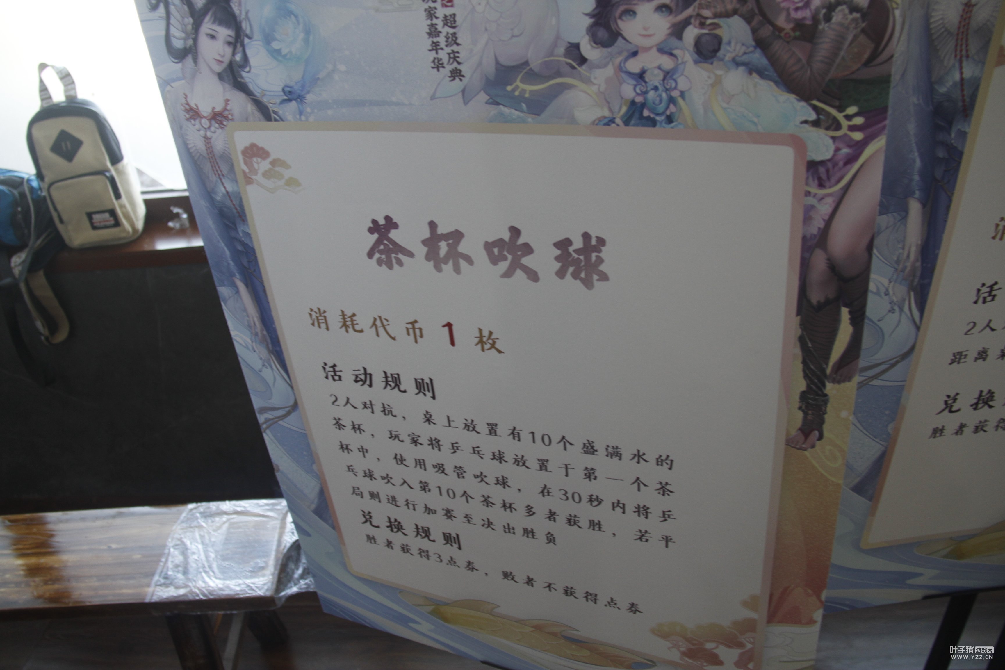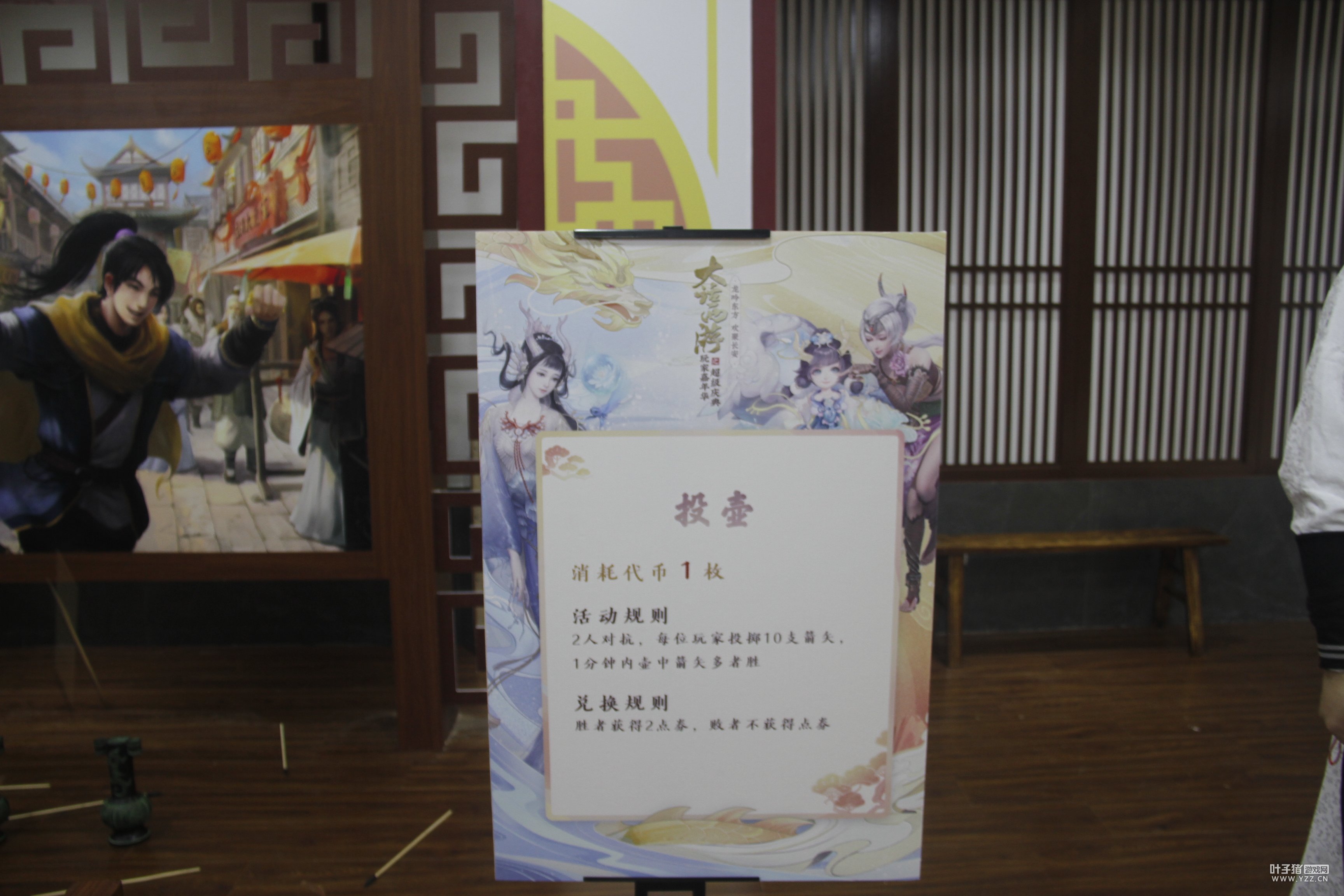少侠,这里坐了一个吹陶笛的美女,你们猜她吹的是哪张图的背景音乐? 想自己编织花环或手链的话,来醉花阴吧~小编表示实在手残,只能看心灵手巧的玩家们参与咯! 这个叫“迦然”的活动很有意思,大家可以再次练习书法,穿穿古装,有个穿越梦的小伙伴还不赶紧粗线? 还未入场,路上的活动已经将大家的热情完全调动了起来,下面进入主会场,其中的活动更是琳琅满目数之不尽! 主会场门口的荷花池中,一个硕大的“鸡驴大神”赫然在目,看来想要在游园会汇总获得奖品,也需要咱们鸡驴大神的保佑咯! 对了,打灯谜活动简直是跨越所有年龄的益智活动,参与人数非常的多,太阳东边下,月亮西边挂,猜猜是什么呢? 进入主会场,来来来,先投个壶,一次手气+技艺的比拼: 尴尬的是,这位小伙伴...emmm...一个都没中? 长筷夹球,哎呀呀美女别心急哦,这游戏越心急越夹不到,想要活动礼品一定要耐心耐心~ 茶艺活动吸引了很多闲情雅致的玩家参与,长长的壶嘴小小的茶杯,千万别小看了这项技艺,要倒得精准倒得恰到好处可不容易: 相比倒茶,推茶杯的小游戏对于小朋友的吸引力就大得多咯,看看你们的手速和巧劲,有没有各位老爸当年的风范? 关于茶的游戏项目还挺多,这个茶杯吹球的游戏难度就有点高了: 哎呀,偏了... 几位有爱的爸妈带着孩子参加这个“快速数瓜子”的活动,旁边的小姑凉都急咯,爸爸你快点,别光顾着吃啦! 夹龙珠,这个游戏会用筷子是不够滴,得用得非常非常好才行~如果有外国朋友参与的话,估计会一秒崩溃吧... 再打一把康乐球,这个迷你版的小桌球类游戏由来已久,经典的玩法也吸引了不少玩家的驻足,小编也忍不住上去操作几杆~ 玩到这里,小编虽然腰酸腿疼,但感觉还是有用不完的力气和精神,今年的活动真心要给大大的好评! 今天的游园会活动就为大家带来到这里了,还没有看够?没关系,更多精彩内容明天继续为大家奉上,也请关注我们的实时直播页面,看更多有趣瞬间!