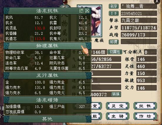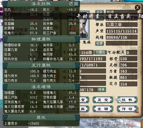 先上属性图,够垃圾的队吧,仙鬼武器都地摊的,男鬼长期自动3法秒。修改完给我感觉,修罗速度没什么影响。 塔4以上怪才加抗震慑气血,因为6,7只杀简单,感觉也没多大区别。 而且火法仙秒4,5,6好像伤害大大提升,特别秒6的凤凰,昨晚一回合秒掉。 唯一感觉有影响的是孤竹城, 抗了气息血,小号队2吸2秒都死不了几个,靠男人混砍,比以前难杀点: |