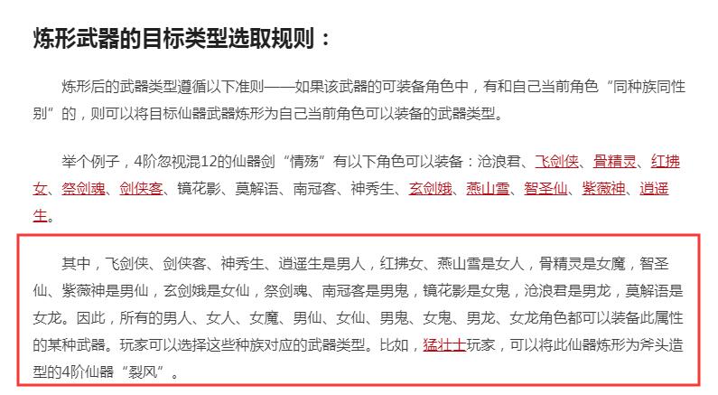 前天公布了仙器炼形(重铸)的规则,本人是女人玩家,今早一看,格子里所有的老版四介冰鞭子都被商人点了,想来是打算转给男人用的。 然而根据规则,鞭子是不能重铸给男性角色用的,那么商人的用意就可想而知了。 统计几件不能给其他性别用的仙器,欢迎补充: 希望大家擦亮眼睛,自己不要盲目入手的同时,更不要被商人忽悠接盘! [编辑:丰趣]
