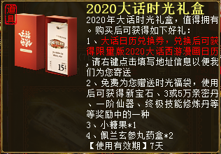 大话西游2教你一招,“免费”获得2020大话时光礼盒