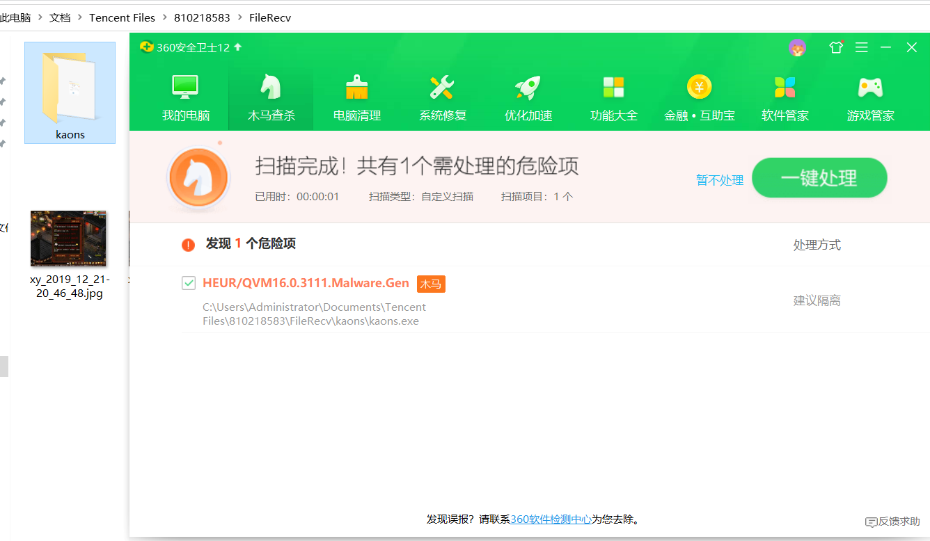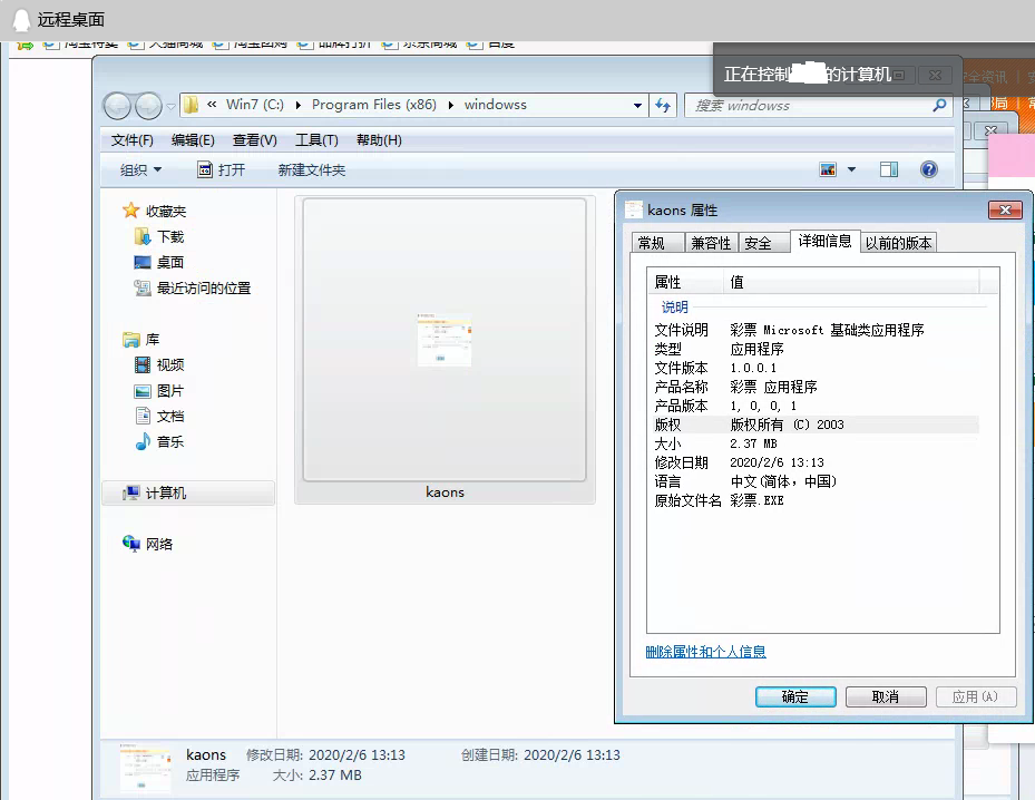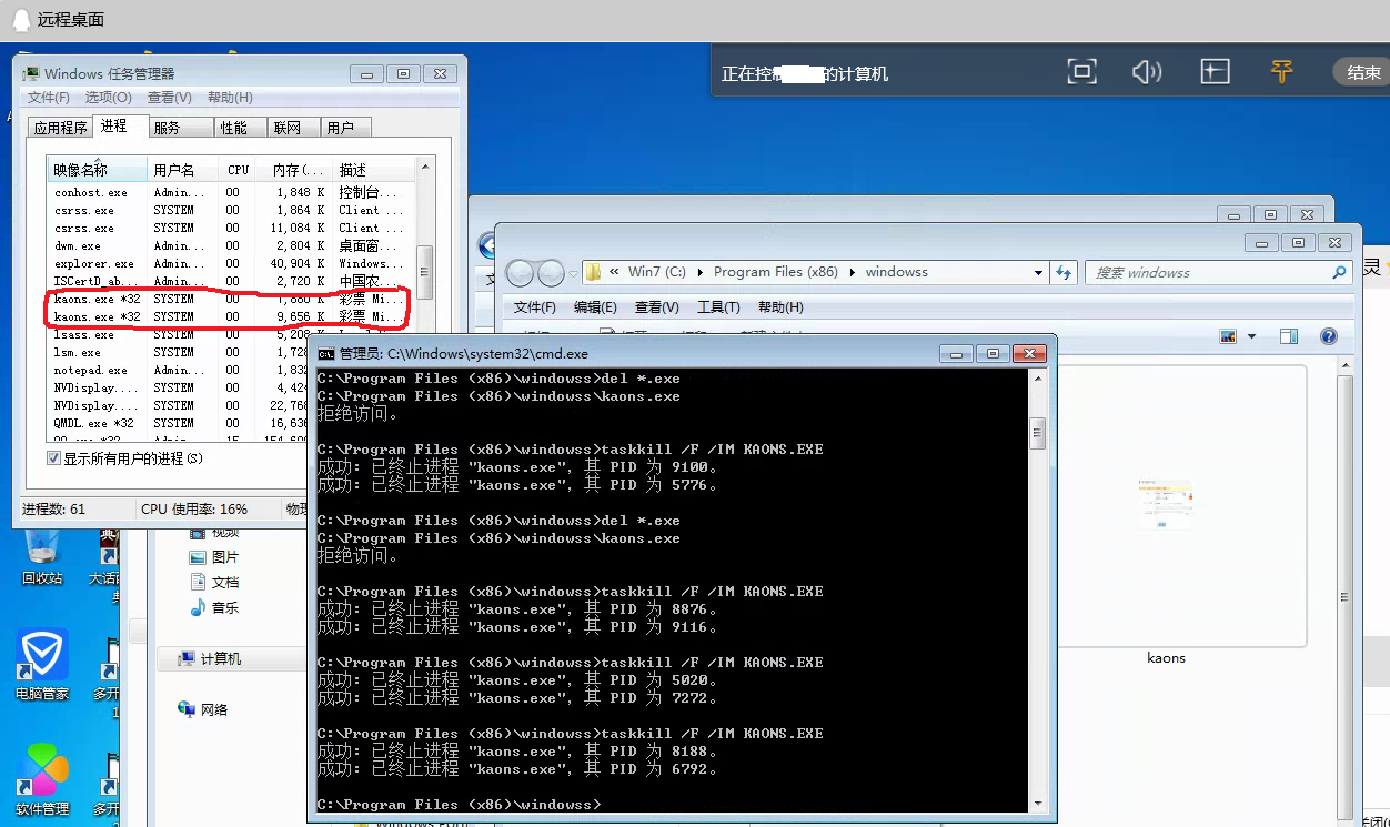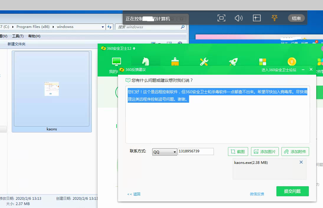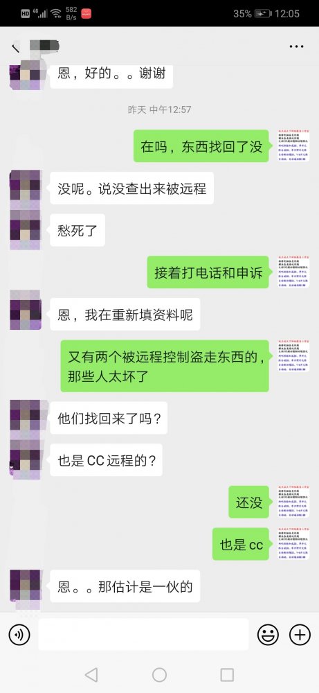 电脑中了远程控制后一定要重装系统,因为木马会自动运行,重起了又会自动启动,于是他们找我帮他们远程重装系统,用QQ远程协助连接过去后,打开任务管理器就发现了不明运行程序。原来远程控制木马还在运行。于是用360安全卫士来查杀,查不到如下图: 查不到木马 于是我在360里提交了这个木马文件给360,让他们添加到木马库里,截至发稿360安全卫士和360杀毒已经可以清理了。 把木马提交到360安全卫士里让他们添加 我再安装了电脑管家,让电脑管家来查杀木马,也是无法查杀,如下图: 电脑管家查不到,找不到木马提交的地方,无法上传提交 我们来看下木马的图标是转账截图的外观,介绍是彩票的。 远程木马文件 木马文件一直自动运行,怎么结束都是会自动启动,就用taskkill命令结束木马,也会自动运行。 木马一直自动运行,无法结束掉 原来木马添加了服务,让服务自动运行,如下图 服务里自动恢复,自动重新启动木马 后面帮他们重装系统后,把所有盘都格式化,重新下载大话和360安全卫士。 由于为了测试杀毒软件有没有添加到木马库,截至到发稿的时候,再测试查杀木马已经被360安全卫士和360杀毒软件都已经查出来了,电脑管家还是提示没有木马。详见下图: 360安全卫士和360杀毒都已经查出木马 电脑管家还是提示无风险 那位玩家被骗忽视的武器还是没有找回,希望早日找回。详见下图: 还没有找回 那些远程控制的盗号者,通过CC传远程控制木马文件给受害人,只要打开了文件,电脑就会被盗号者控制住,你的鼠标就会失去控制。眼睁睁看着对方把你东西交易走。你无可耐何,遇到这样拨掉电源也能阻止交易。最好是别接CC,QQ,电脑微信上的文件。以前那些盗号者都是用QQ发送。现在都是改CC发送,因为CC是网易自己的,所以很多人就降低防范意识了。 还有个建议就是,电脑一定要装杀毒软件,部分杀毒软件装了也是白装,查不到木马也是无济于事,建议使用360安全卫士和360杀毒软件或者360安全卫士也行。每周查杀木马病毒,以免电脑中毒。如果不知道哪里下载的可以在这里下载最新版本的360安全卫士:http://dl.360safe.com/netunion/20140425/360safe+286784+n73fd26a699.exe 线下交易有风险,最好在藏宝阁里交易,安全起见,千万别随便接收文件,贵重物品加锁和加时间锁,绑定电脑,或开启将军令安全模式。 最后祝大家玩的开心,多得好东西,先给大家拜个早年,合家幸福,万事如意!如果有需要加入叶子猪微信群交流的,可以加我新微信j5weixin,原来微信zny221005满5000人。我拉您们进群交流。 战且试天下新微信号,邀你加入叶子猪微信群
