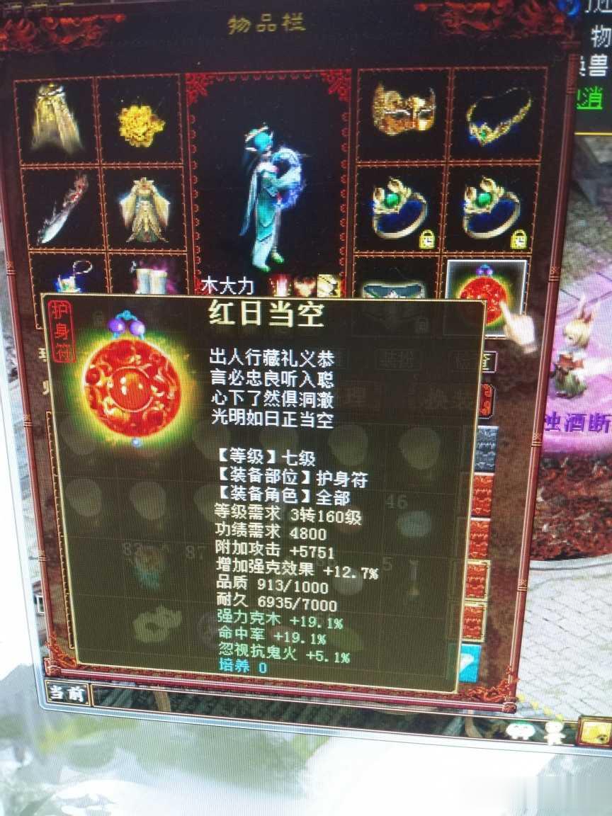 游戏中的五行克以克水克火居多,克木以前也曾经风光过,现在逐渐被冷落,但是却并没有淡出人们的视野,还是有玩家衷心于克木号的打造,克木装备相对便宜,只要区服内同克玩家多或者自己选择多开,照样可以玩的嗨。 下面这位玩家是位159级的小号女魔,角色正在打造中,面板攻击达到了9万+攻,1400+敏,看下装备情况: 默契大力挂件