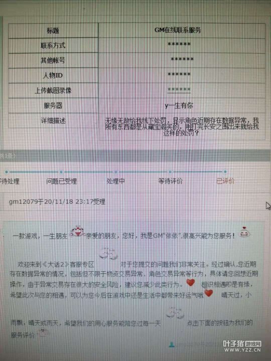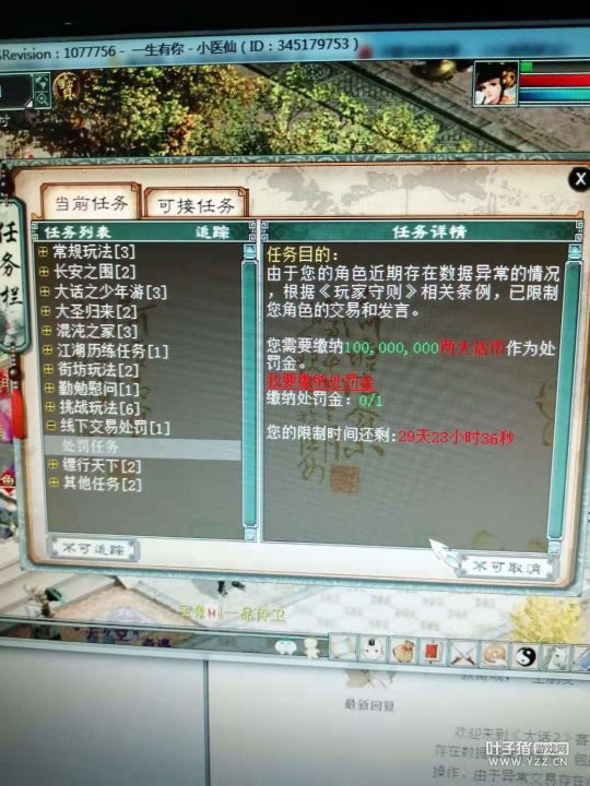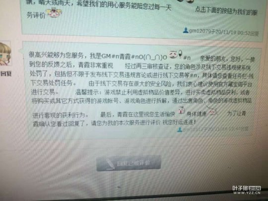 近日收到玩家投稿,自己11月10号买的角色,包括一些大话币和装备都是从藏宝阁买的,结果玩了几天就收到了下面这样的信息: 让交处罚金1亿