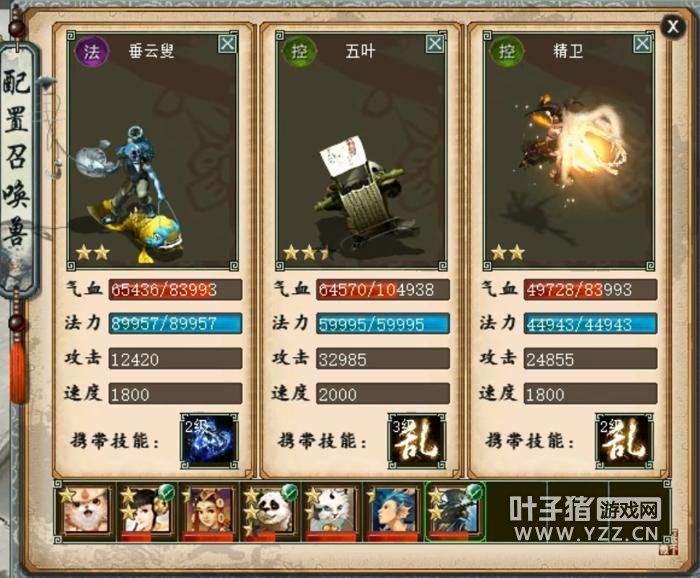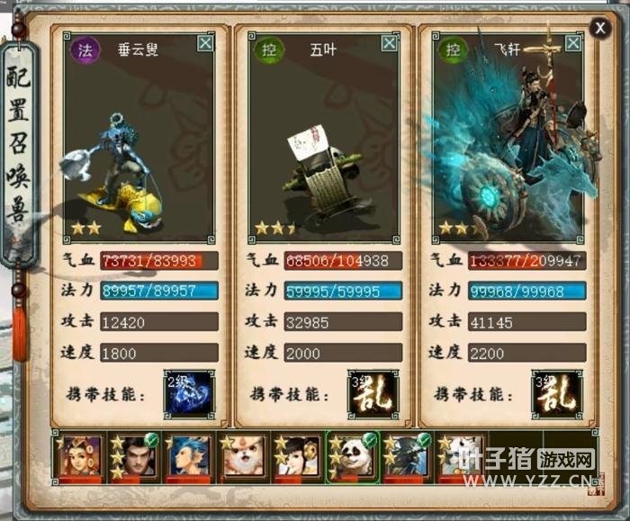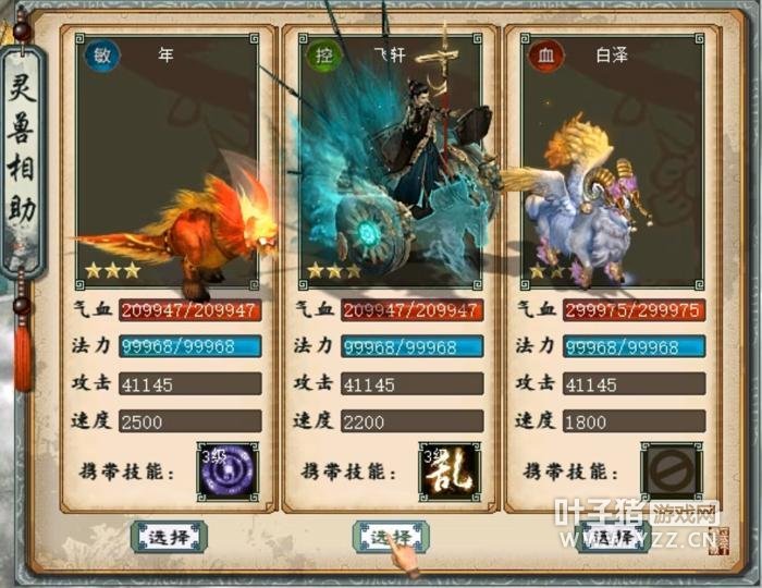 召唤兽的选择 轮回之境的召唤兽只能从“灵兽天官”那里获得,记得一定要选有这个NPC的休门和开门,宝宝最高为3星,最低为半星,根据层数的增加而增加星数,我此次通关带的宝宝为一只飞轩(混法)、一头年(速法)、一只垂云叟{水法}。 召唤兽选择界面