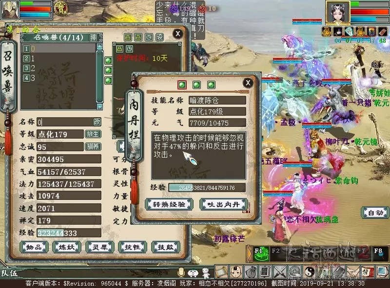 老玩家都深有体会,在当年绝对躲闪的时代,要想物理攻击命中目标(主怪和部分BOSS)只有靠大力的孩子,而且平民玩儿家的大力孩子亲密孝心没有特别高的,并且一个神孩子培养的精力和技巧都不是一般玩家能够消耗得起的(时间精力和技巧等),为此各大版主和经验丰富的玩家也出过很多的攻略为玩家培养神孩子提供思路。现如今,大话龙族的出世开发组认识到绝对躲闪的问题,正在逐步将绝对躲闪的NPC修改为大力魔和大力秒龙能够正常命中或者更容易命中的设定。(部分不需要杀死的主怪还是有绝对躲闪的,这个设计也合理)这个动作可以说对大力宝宝也是个好消息,为此确实应该为开发组点赞。但是呢,没有了绝对躲闪并不是命中率100%,像现在的大力魔及时满命中88.1的情况下如果没有上牛的情况下,命中孤竹最后画师和前3的几率也是很小的,并且上牛后也是有几率躲闪的。所以,为了进一步提升大力和宝宝的命中概率,灵犀系统里面就专门提供了一个技能,辅助灵犀“一矢中的”,如下图是点满的效果介绍。 可以看到是将宝宝的暗度内丹效果阉割后附加给乙方单位2回合。 拿一个180级的暗度内丹和没有宝宝亲密的暗度效果看一下,如下图,也就是可以为指定单位提升命中概率和忽视反击率各47*0.5=23.5 那么需要多少灵犀才可以点满它并发挥作用呢,如下图所示,17点灵犀即可。 这个灵犀比较适合高敏法宝宝来用,比如响马、精卫、金胖子等等,还需要宝宝有暗度内丹的,还有个附加的好处,宝宝可以高敏打气。 战斗效果如下图,很遗憾,这个灵犀技能还没有任何特效,不过开发成本也在那,后面估计会加个特效上去,更好的识别技能。 为大力或者宝宝上这个技能后,魔再上牛,有效提升命中概率,比如:五倍奎木狼的后2和后5、孤竹最后画师和前3、混沌之冢的BOSS所有单位、还有很多不一一列举了,总之这个技能很优秀,小伙伴们快去点吧。 最后附一张命中五倍奎木狼的图。 [编辑:九尾猫]