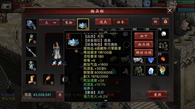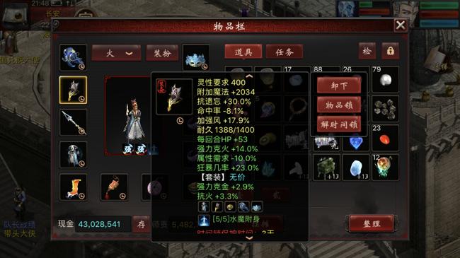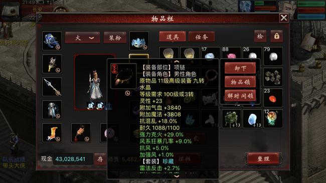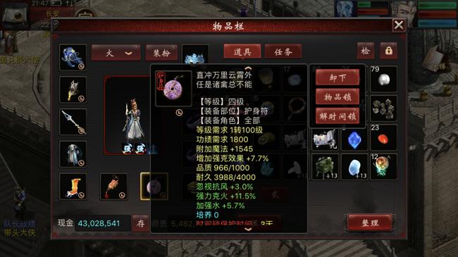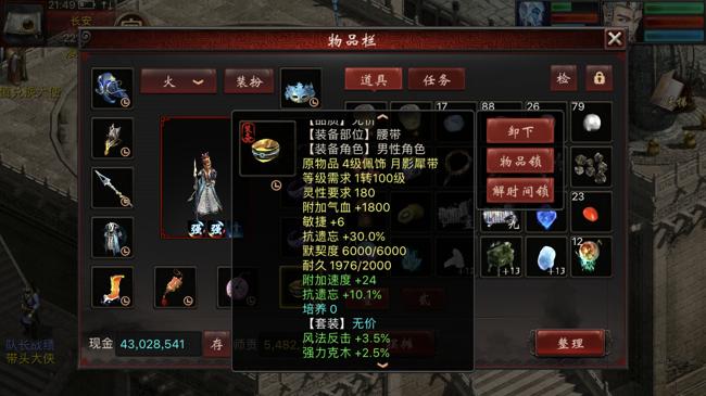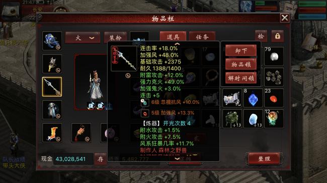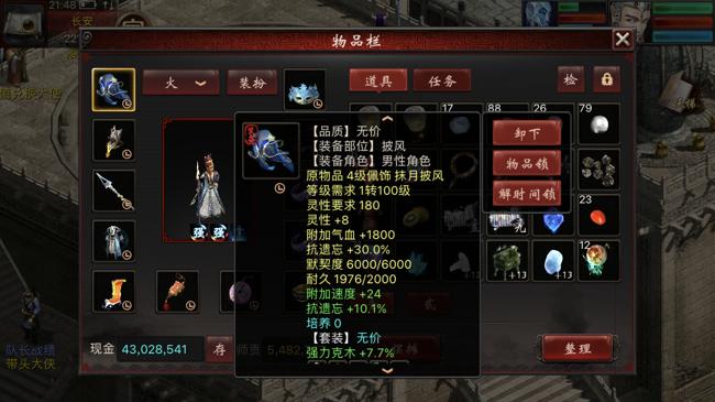 1转角色在装备的选择上还是有难度的,只能选择11级的项链和鞋子,全套的4级配饰,武器、衣服、帽子根据属性点数,选择400灵性要求的14级装备。当然也可以使用6级神兵——132点力量要求和三阶仙器。就上面的属性来看,1转能做到这种程度的属性,也是用了一番心思的。