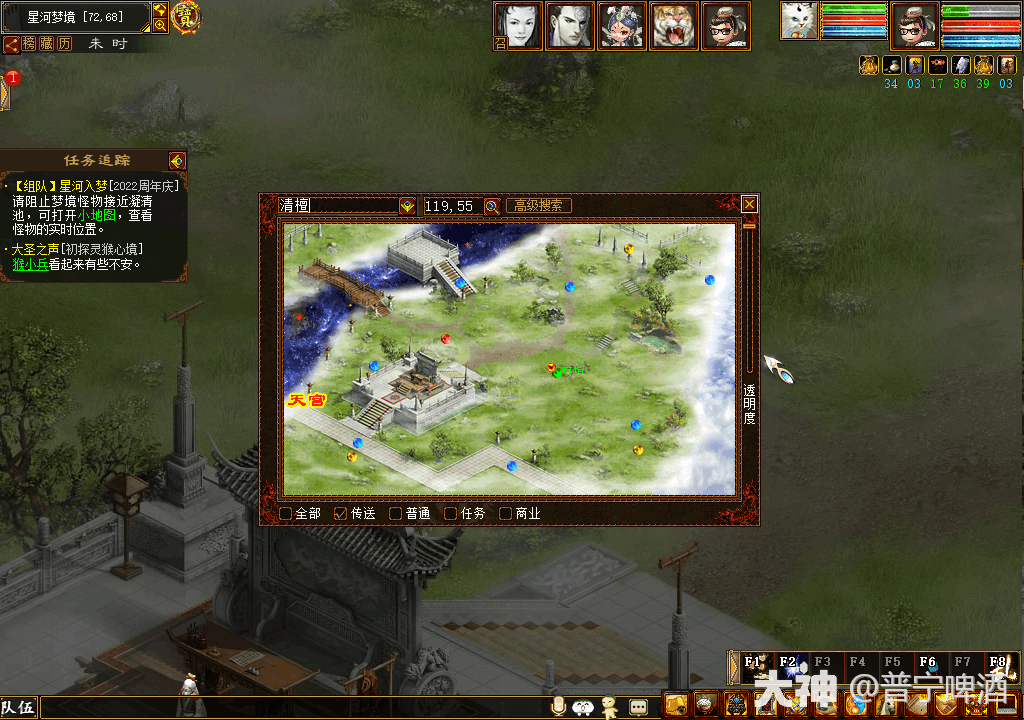 大家好,我是啤酒,周年庆活动开始了,下面的全篇攻略,给大家作为参考!话不多说,直接上图! 看到这一排了嘛?这一排就是周年庆的标配拉,每年的周年庆活动都是依旧很多,奖励非常丰厚的哦!我们一个一个来看看怎么做 首先第一个:三界同庆,这个就是正常的组队击杀小怪! 领取任务后,跟随任务指导,完成任务,难度简单,容易击杀!每天前10次必得物品,11-30次偶数获得物品,队长带10次有额外1次的物品奖励! 第二个任务:暗流汹涌 这个每天的12点-23点,整点刷新,类似板载千秋的BOSS时间,在任务提示的地图刷新 难度简单,随便杀! 第三个:昆仑来客---也就是BOSS咯 我们还是吃符开干,给大家看看号的面板吃符文属性! 男人 女魔 男魔 女仙 男鬼 好的,拿上月卡,开整! 我这乐色属性,先试试卓越什么情况! 第一个:好斗的青鸾 难度,没难度! 对面整体敏不超1500,点前3的树混就行,因为它会抽,很讨厌!但是基本无难度 第二个:好斗的翻羽 难度,没有难度! 对面整体一样不超1500敏,说什么注意那个话,其实就是逐日跟逐月的区别,逐月就是低敏超大力,一下一单位哪种,不过根本影响不了整队输出,因为敏不超1500,我都出完手了,倒了就二回合拉起来继续输出就行! 第三个:好斗的天禄 对面敏续基本低于1500,难度递增有点难度,俩好回血单位,回2万,血量不多。前面2个莲花,一个让你别想回血,就是免疫群体那样,我没回血过,不知道啥样。一个是群体免疫抗混,反正就是别想混上。那个葫芦会变身,变了寂寞吧,不知道干什么用的!主:遗忘;罗刹鬼姬:大毒,血量不多。其他单位无视了~ 第四个:好斗的离朱 前面很简单,抽秒怪就没了,剩下主怪的时候,就会出现图下这样的,主怪暂时低敏抽 精魄无脑拉主血,前面的朱雀死剩下0个的时候,主怪会出群里火法高伤害我被秒杀;剩下1个的时候,就会背水一战,自杀,给主怪回血,然后主怪秒杀5个单位火法;剩下2个以上,主怪就会大力砍,还隔山;所以,这关,我们准备好怨气了,金箍上主怪再慢慢磨死对面吧 好吧,我打不过你,再见,你这个机制,我是很佩服的!G上你就过来砍,,一刀2个小朋友,不G上,你就开秒,1秒5个小朋友,唉!我不杀了好吧! 第四个boss因充钱不够杀不了,请其他的大神补充!! 第五个:好斗的英招 这个卓越难度明显提升特别多,跟前面几个简直天差地别,看见对面那2个灵宝了么,没错,我的灵宝给那金击子敲没了。。风:2000敏风法;林:1800敏毒法,对面倒地没控制住会回血20-30万;其余单位都比我队伍敏低;主:霹雳法,伤害不高;山:低敏回血,一下回7-80万;风之仆:大混,会春林之仆;林之仆:遗忘法;火之仆:无视混法,会春山之仆;山之仆:低敏大力单位,会春开山;阴:无视混法,低敏大抽;反正我翻车一次的这个数据,我再来一次试试!!好吧,我混不上,难杀~还是杀简单吧! 好的,简单我也杀不过,好变态的机制,输出不够,控制不够杀不过!! 第四个任务:星河入梦---副本任务 图上分为迷雾,英灵,守护, 第一关,迷雾,找到这个英灵,然后左上角有个任务提示,带到凝清池 然后答题 需要带20个,这时间有点来不及吧! 答错题就战斗! 撞到地图的梦魇也要进入战斗! 撞到小妖也进入战斗! 没错,撞到小妖会无脑进入战斗,不给你休息时间那种! 找到这个说可以驱散迷雾 但是要玩游戏,我还没看明白呢,时间到! 进入下个阶段! 蓝色小怪任务,金色大怪位置 小怪无难度,抽秒就完了! ....晕,无伤大雅,就是没了一点点物品奖励! 金色的小怪,难度也不大,抽秒就没了! 金色小怪能获得一次物品奖励! 杀完7+3就会出现饕餮,算上老大了吧! 主怪超敏抽,前面的俏皮娘是大力单位 整体难度不大,抽秒就完了 总体这个副本难度不大,为什么我没杀满,因为我不知道他们会自动走进那个池子,所以看地图先跑过去击杀,难度都一样的! 第五个任务:花开祈年 到情花领取任务 净化混沌,我们去看看 这个很简单,抽秒就完了,跟小怪一样! 任务要求3个地图,杀完分别的10个,就算任务结束了 第六个任务:轮回之镜----去年出现过的玩法! 去年出现过的玩法 这个太废时间了,我不做这个任务 来个大佬补上吧,真的太慢了~ 第七个任务:时光游廊 领任务开始! 难度跟任务小怪难度一样,抽秒就没了! 偶尔接到任务是这样的机制怪,找出不是仙器名字的,杀了例如图里的玄黄,对面其他会逃跑,仙器名称怪物也是能杀死的,所以,更换下主要击杀目标,还是可以挂自动的,就是墨迹了点! 偶尔接到这样的拼图,并不难,大家注意图片边上的痕迹,依次放回去就行! 杀完给记忆碎片2个,在我们的功绩册里面可以找到这个大话风华录,每天上限30次,給60个碎片吧,激活勋章获得周年积分, 40分激活一个,给了30点周年积分 激活勋章获得周年积分,可以在对应的NPC兑换奖励,奖励兑换,没有看点。1分---------200W宝宝经验;16分-------50W师门;8分---------随便;20分-------绑定的三清丹;4分---------1000亲密;3分---------召唤兽技能;600分------大话20周年纪念勋章;7分---------10点体力;20分-------1个1级不可交易宝石。 好啦,今天就给大家分享到这了,其他的单人任务我都不想去做的!因为浪费时间。谢谢大家的观看! [编辑:纳兰德骑士]