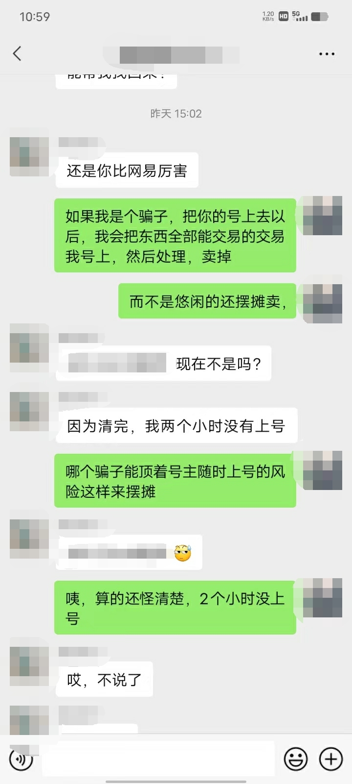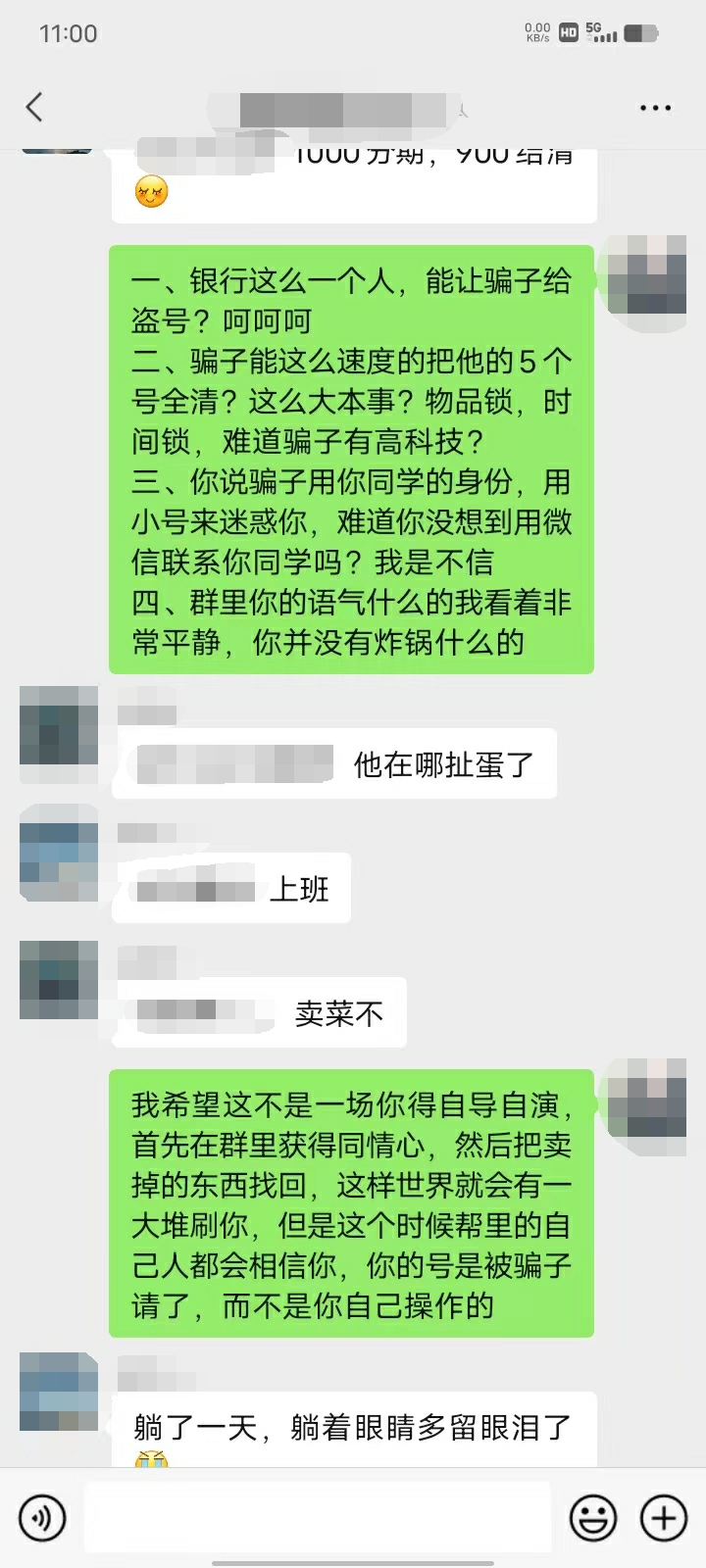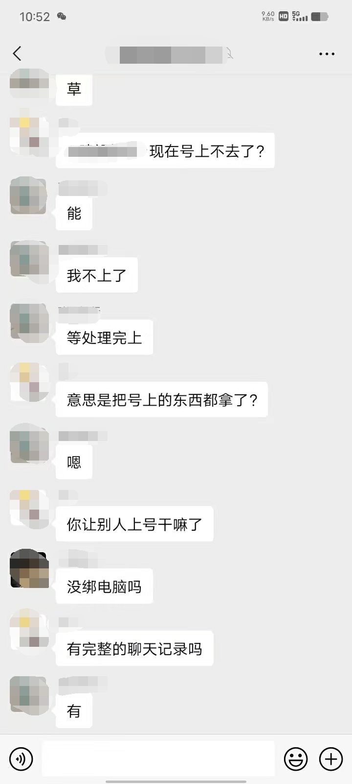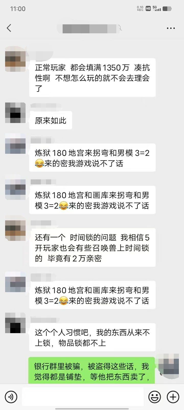 大家好,我是一名大话玩家群的群主,具体服务器和帮派先不透露了,主要想跟大家分享一件刚刚发生的奇葩事。 前几天,我群里有个玩家说自己号被盗了。他说明原因后,我总觉得哪里不对,事情经过是这样的: 一五开玩家在帮派群里说自己号被同学盗了,然后说要申请找回。他一会说骗子是冒充他同学,一会又说这个人其实是同学的弟弟;而且号被盗后,他的号还在摆摊卖东西。并且他在陈述这件事的时候,看起来平静得很,也并没有着急或者骂人,于是我就怀疑他有其他目的...... 下面给大家上聊天记录,大家感觉一下我的怀疑是否有道理: 我给出的结论就是:他是想通过他的现实朋友上他的游戏号,把东西都卖出,然后再由他本人上号申诉被盗追回,这样他就是最大的收益者。 之所以在群里说号被盗,是想拿这个作为铺垫,到最后那些买过他东西的人物品如果被找回,肯定会满世界刷他。这个时候他在群里的聊天记录就能发挥作用——让帮里人相信,他的号确实是被骗子盗号。 如此一来,他就是最大的受益者了,不用承担找回后的人设崩塌,还能多赚5个号的物资...... 当然,这件事情目前还只是我个人的怀疑。而我也和其他玩家私下沟通过,他们也持有相同的态度,同样怀疑是他“贼喊捉贼”。分享这件事的背景,也是源于现在的骗子大行其道,尤其是线下交易的玩家,交易完就删好友玩失踪的大有人在。前一天还你侬我侬,朋友兄弟,第二天直接人间蒸发,只留下受骗者的谩骂指责和刷屏爆料。 希望大家在交易时多一分清醒,能走阁子的绝对不要线下。而且角色要绑定电脑,高级解锁码不要轻易告诉其他人。保护好自己的角色,给自己更好的游戏体验吧! [编辑:纳兰德骑士]