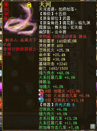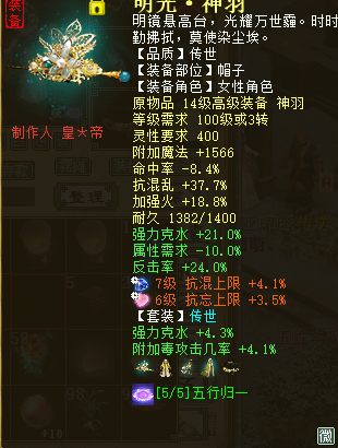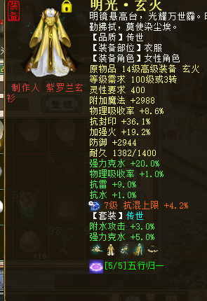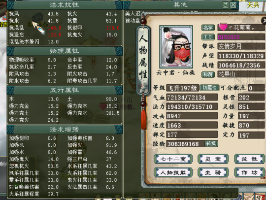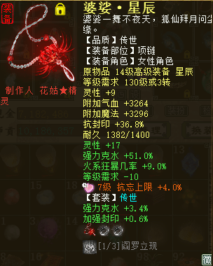 大家好,我是来自【百鸟朝凤】服务器的玩家,我的角色名叫“花萌萌”,玩的是火法克水“程度”炮,人送绰号“截图大师”。 本次露脸,是很忐忑的,为啥呢?首先是自己的号并不出色,担心被喷;其次是我投入并不多,怕比不过那些仙器大佬。但是我还是想秀一下,而且也尽量展示自己角色最好的一面给大家,这也就是为什么开头戏称自己是“截图大师”了。 玩火法,是因为喜欢火法5法的效果。改版前的火法就喜欢,现在的火法还是很喜欢。当然这里并没有说其他法术效果不好看,我只是钟情火法罢了。话不多说,先来上属性图。 上图是吃天谴符文变卡后的属性,我也吐槽下自己的狂暴几率。确实很不稳定,但是狂暴的属性真的太好看了,有时候一些拿五阶仙器的仙都说没我秒的多(狂暴时)。但是不稳就是不稳,如果想稳,就是砸钱搞几率,但对于一个普通玩家来说,有点承受不起。我觉得现在的装备花费,就非常适合自己,下面给大家看看我的硬件系统。 得益于武器和项链都有不错的属性,能做到战斗状态有851的灵性和1663的速度,大部分日常任务都能胜任。也是那位之前夸我的五阶大哥谬赞了,其实高端副本,我确实是拼不过人家的。人家不光只有一把五阶,其他装备和宝宝都完爆我,这点我还是有自知之明的。下面来看看我的伤害。 看图就知道为啥自嘲自己是“截图大师”了,没实力的人才说自己有实力,真正有实力的却都很低调。但是我很希望能在媒体上展示下自己的成绩,随便我的实力不济,但是对于自身的情况来说,此刻我也是一朵盛开的鲜花。 我的打造方式,并不值得大家借鉴和推崇。想要狂暴80+,武器、项链和护身符更换一下就好。想要不影响伤害,那就直接换一把高火法几率的武器,但是那可是白花花的银子。而且让我舍弃克去换带几率的项链和护身符,我又不想看到我的高狂暴伤害降低。投入低,很多人都这么纠结着,但是最后我也想说一句,打造的用点心,伤害说得过去,就开心的玩下去,少进行对比,别人的并不一定适合你,你也不一定驾驭得起,祝大家游戏开心。 [编辑:纳兰德骑士]