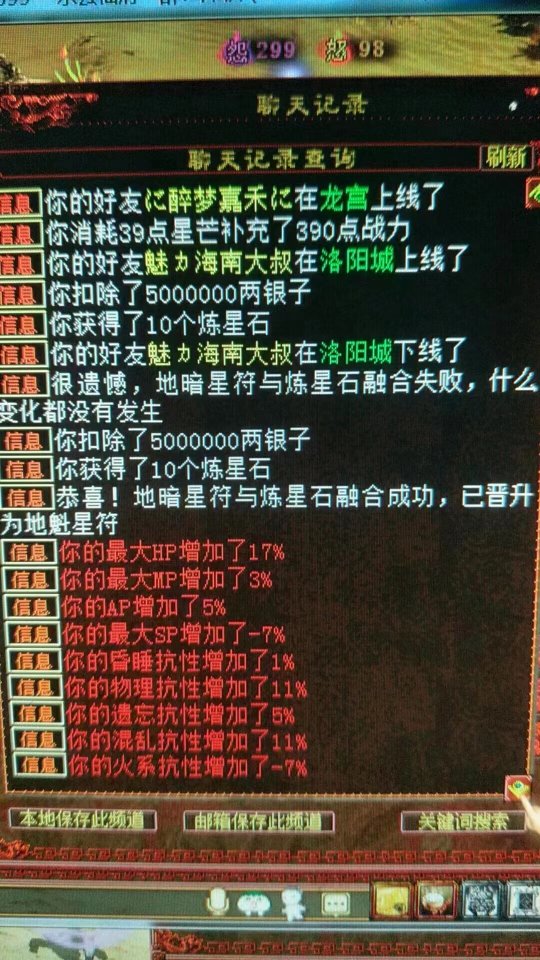 大家知道和神兽擦肩而过是什么感觉吗?值不值系列之3400块买的2阶仙器?两件极品炼化同属一人,主人已哭晕!炼星到底有多刺激? 一、与神兽擦肩而过,命运跟他开了个大玩笑 玩家有一只心猿追梦,他也成功点出了一个问号技能,却不在心猿身上。 据玩家说,当时他点技能的时候,在心猿那里犹豫了了很久,一只在想“自己没那么好的运气”。于是他把鼠标移到了“万寿山神”的技能上“啪”的点了下去。下一秒,他欲哭无泪、肝肠寸断,一万点带着忽视防御的伤害刺穿了他的胸膛,直达他的小心脏。他说:就算把键盘跪烂了,都弥补不了他手重伤的心灵。神兽并不只是与它擦肩而过,而是以梦的形式,和它纠缠了很多个夜晚了。从那天后,他每晚都梦到和“一念圣猿”玩耍,每天早上醒来的时候都怅然若失好久...... 二、3400买2阶仙器,蓝字属性有玄机 偶然看到3400买傲天?不是有人看错,就是有人喝多,让我们来验证下! 原来是蓝字忽视抗震慑2.9的魔用小神器。但是3400的价格,是否稍显贵重呢?记得有帖子分享蓝字根骨抽或者蓝字灵性抽,出去装备要求的属性,其余属性还是足以胜任日常任务的。况且无属性要求的蓝字抽武器,PK中并无太大用处,有玩家肯花3400购买,那只能说明是真爱(不缺钱)了。 三、一人炼化两件极品,越看越伤心 一位玩家炼化出两件极品武器,但是越看越难受,这是怎么回事呢?让我们来一探究竟! 忽视混7武器底子出克火25鬼火暴34炼化;鬼火武器底子出忽视混9炼化!!!真不敢相信这两件“神器”竟然是出自同一人之手,怪不得人都说,挖宝穷三代,炼化毁一生! 四、星芒在手,14星卡别想走 星芒绝度是个好东西,大家闲来无事可以杀星积攒下,偶尔会有大惊喜,不信你看! 玩家这操作就真应了“手里有粮,心中不慌”这句话。这平时积攒的星芒,不光用来补充星卡消耗,没事还能换点炼星石给星卡升个级,这一不小心2下就整个14级的出来,带劲不? 今天的大话新鲜事就到这里了,感谢一个无聊人士、曾经的曾经、白天、勇敢的骚年等玩家的热心投稿。小伙伴们如果在游戏内外碰见任何有意思的事情,都可以给我们投稿哦! [编辑:纳兰德骑士]