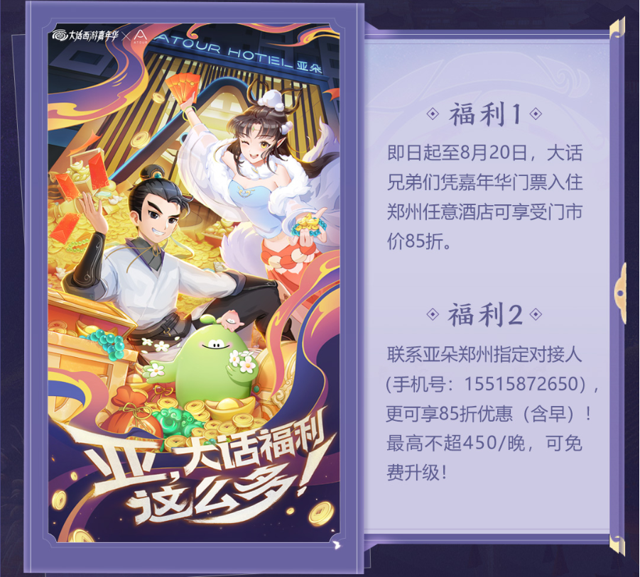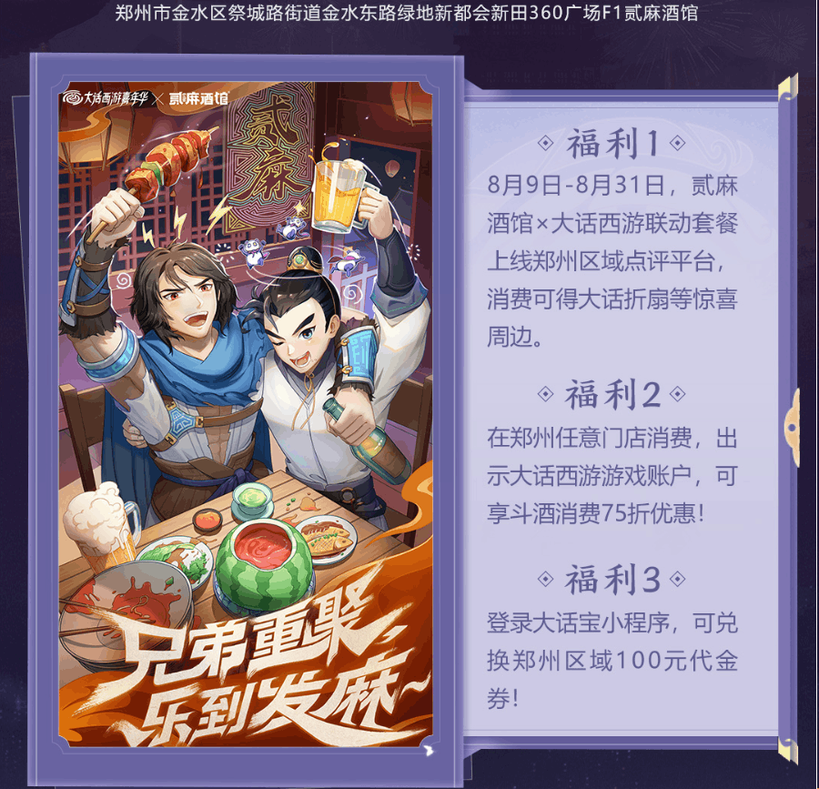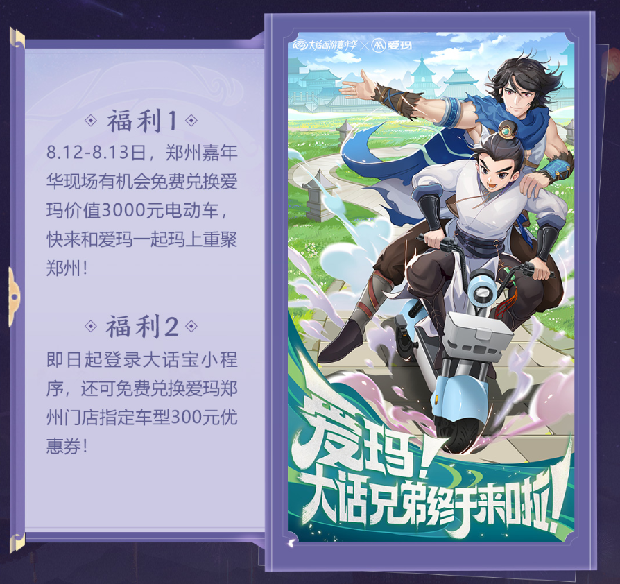 2002年接触大话,参加最多的就是网吧联动活动。那时候所在的城市要是确定哪家网吧有活动,坐公交也得去参加。有点卡送,有活动参加,更能认识一些同城大佬。记得有一次认识了一位同城的大哥,还是同服务器的,回去大哥就送了一把4级神兵给我,那舒爽劲,记忆深刻! 当年我们参加的是网吧联动,早期就是网吧老板组织,估计也是上货上的多,有权限发点福利啥的。后期就是有比较专业的cosplay参加了,那场面,那家伙!当时小城市的人,谁见过这个啊! 昨天又看到了大话西游郑州线下嘉年华的活动消息,第一时间点开了解详情。看到的就是“品牌联动”的信息。 这算是吃喝玩乐一条龙了吧?早先在2011年的时候,有一次开发组见面会就有人提到过这类要求。大概意思就是,能不能多组织一下线下活动,现在交通也便利,互联网也比较发达,交流比早年方便多了,大家抽空线下聚个会完全没问题。当年我个人还觉得这不现实,现在不光能线下聚会,而且大话居然联动了这么多品牌,还有优惠活动,这上哪说理去。 时代在发展,社会在进步。当年线下网吧活动我们抽的是钥匙扣,喝的是纯净水。现在我们抽的是艾玛电动车(刚好配当年的钥匙扣),喝的是东海渔村特产椰子水!每次参加线下活动,最期待的就是cosplay的小姐姐们,那感觉!那!就别提多带劲了。这么多年下来,也是积累了一些心得的,有同样爱好的朋友,可以一起来郑州交流下哦!老铁们,8月12-8月13日,我们一起相聚河南郑州嘉年华,一起嗨起来! [编辑:纳兰德骑士]