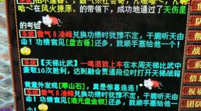 一晚上得两双藕丝,还是降妖录出的?灵兽要诀也能逆天改命,你敢信!大佬开了一套碎片,神兽年到手!一把风武器,炼器出极品!地宫随机连出俩个神兵,鸡驴附体啊! 兄弟们好,大话新鲜事栏目每日准时奉上,一起来欣赏今天的精彩内容吧! 一、 一晚上得两双藕丝是什么体验 新区玩家开降妖录,仅仅开了两次,就出了两双藕丝,今晚注定是个不眠夜啊! 第一双藕丝 第二双藕丝 两双藕丝放包里,心情美滋滋啊!据说新区的藕丝要5500一双,这收入就算破万啦! 二、 灵兽要诀逆天改命 玩家给自己的宝宝吃了一本灵兽要诀,结果一发入魂给了大隐技能,一起来看看是啥宝宝吧! 系统消息 原来是葫芦兄弟大娃领悟的,来看看宝宝全貌: 大娃 恭喜老铁一发入魂,小编也想给自己的宝宝吃技能书了! 三、 大佬开神兽碎片,年兽随之出现 大佬买了一套珍稀神兽碎片,来试试手气,然后...... 碎片换出神兽“年” 一发入魂,恭喜大佬获得神兽“年”一只,接下来就该悟终极了吧? 四、 风武器炼器,全场沉默 兄弟给自己的风法武器炼器,然而出现的属性,竟让全场为之沉默? 武器全貌 极品风武器,结果炼器出了忽视混5、风系狂暴几率9,这让男人玩家看到作何感想? 五、 地宫随机,连爆神兵 玩家杀完地宫去随机,结果被鸡驴大神附体,现场连续出神兵,这运气赶紧去买彩票啊,看看能否中个大奖! 系统消息 盘古锤 混元盘金锁 这随机结果,可以说前无古人了吧?不知道会不会有来者呢? 今天的大话新鲜事就到这里了,感谢挽梦、午后红茶、任先生、一歩一荌、晓柒等玩家们的热心投稿,小伙伴们如果在游戏内外碰见任何有意思的事情,都可以给我们投稿哦! [编辑:qicjedd]