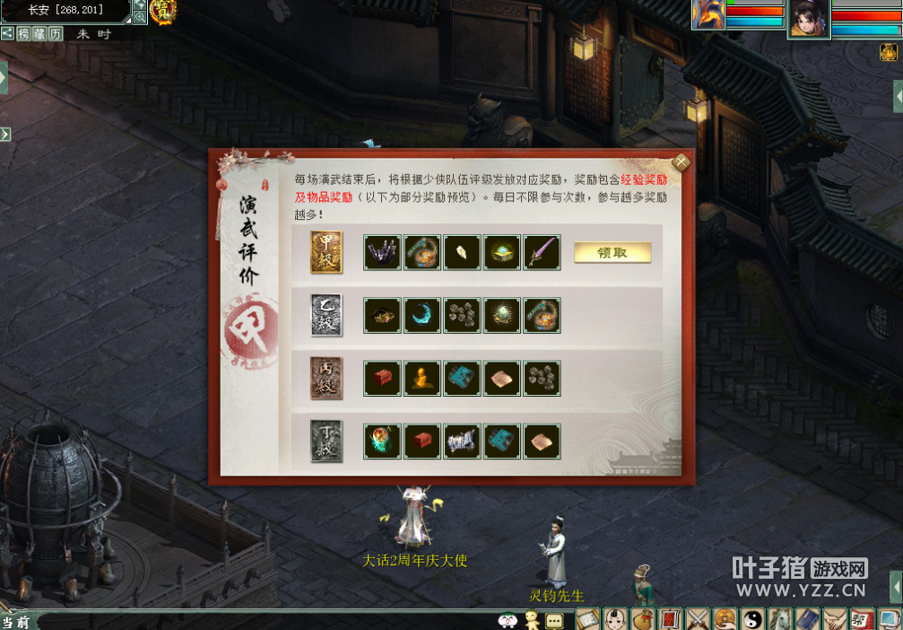1.单人前往指定场景与对应礼官对话,即可领取对应经验奖励、物品或异宝奖励。
