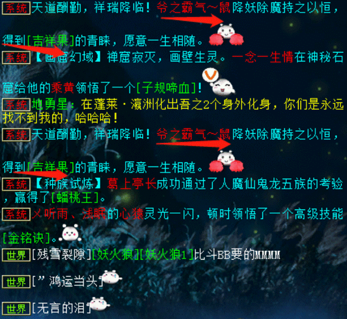 一老铁灵台仙缘抽到藕丝,而且还偶遇财神获得双份奖励!四阶霹雳破洗出忽视抗震2.3!地宫连续换出两只吉祥果!300环要求不高,别来六魂!心猿收获双管齐下终极技能,安心成圣吧...... 兄弟们好,大话新鲜事栏目每日准时奉上,一起来欣赏今天的精彩内容吧! 一、 灵台仙缘抽到神兵,还偶遇财神双份奖励? 一玩家灵台仙缘抽奖,抽到藕丝之外还遇到财神,获得双份奖励,这是什么神仙运气啊! 系统消息 (灵台仙缘玩法活动只限于1.5年以下的服务器) 藕丝展示 第二双藕丝 这真是前无古人了吧?一下获得两双藕丝,这在新区卖不少钱吧?编号都是连着的,恭喜老铁! 二、 四阶霹雳破,炼出忽视抗震慑 玩家给自己四阶武器炼器,结果炼出忽视抗震2.3 武器展示 四阶霹雳扶摇仙器,蓝字炼出忽视抗震慑2.3,真是暴殄天物啊! 三、 地宫随机连续换出两只吉祥果 玩家地宫随机出两只果子,这也太过分了吧! 系统消息 来自雾隐云居服务器的一位老铁,地宫连续换出两只吉祥果,这运气也是没谁了! 四、 300要求不高,不要六魂!不要六魂! 玩家世界喊话300环不要六魂!不要六魂!只要不是六魂就好! 系统消息 要求真的不高,别来六魂!但表哥表示你真的需要六魂,这如何是好啊...... 五、 心猿领悟终极技能“双管齐下”! 来自璀璨之约服务器的玩家,给自己的心猿领悟终极技能“双管齐下”。 心猿全貌 江湖上又少了一只心猿,多了一只圣猿,兄弟还等什么,快去成圣吧! 今天的大话新鲜事就到这里了,感谢午后红茶、元方钢构、杨帆、施、求而不得等玩家们的热心投稿,小伙伴们如果在游戏内外碰见任何有意思的事情,都可以给我们投稿哦! [编辑:q0ckeic]