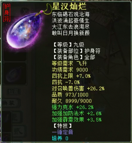 某大佬展示龙族护身符,堪称天花板级别的护身符,求超越!新区过剧情任务,获得极品底子装备!心猿点化才49级就7个格子了,666!十级宝石价值120值多少钱?五个垫底直上六,神器问世,谁于争锋! 小伙伴们大家好,今天的大话新鲜事栏目来啦,来看看有哪些精彩内容吧! 一、天花板龙族护身符,太帅了! 玩家展示自己的九级龙族护身符,属性相当极品,这莫非是龙王本人用的? 护身符全貌 底子四抗上限,对召唤兽伤害,炼化克水,加强霹雳,特技一锤定音,求超越! 二、新区过程爆极品项链,转手一万五卖出! 新服永生所爱中,玩家过剧情称谓时获得男人极品项链,一起来看看! 项链全貌 项链底子敏捷+24、抗冰38.5、蓝字忽视混1.1,据说转手1.5W就卖掉了,赚大了! 三、49级点化心猿,秒开7个技能栏! 点化心猿之后开始升级,没想到仅仅才49级,它就已经开启7个技能格了? 心猿全貌 这算不算第一只50级以下就7开的心猿了?按照这个爆红的趋势,必须要往成圣的方向发展啊! 四、价值120的十级宝石,价值无可估量! 某位老铁在合出十级宝石后,一看价值,居然是120的? 十级宝石 全服也没几颗这样的宝石吧,懂价的兄弟来说说价值多少呢? 五、五个垫底上六,谁与争锋! 来自齐云灵脉服务器的老铁,用五个垫底将神兵斧头冲上6级,还附带两个功绩! 信息提示 系统消息 6级狂暴破 恭喜兄弟成功上6,接下来就差炼器啦,希望能早日毕业! 今天的大话新鲜事就到这里了,感谢沧州小老虎?、格格巫??、午后红茶、三角轮胎、仗剑走天涯等玩家们的热心投稿,小伙伴们如果在游戏内外碰见任何有意思的事情,都可以给我们投稿哦! [编辑:qoclj]