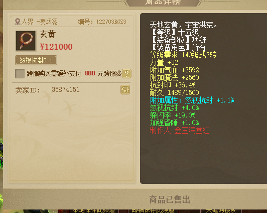 大话西游2冰项链十二万已售出!高级符咒换最贵神兽